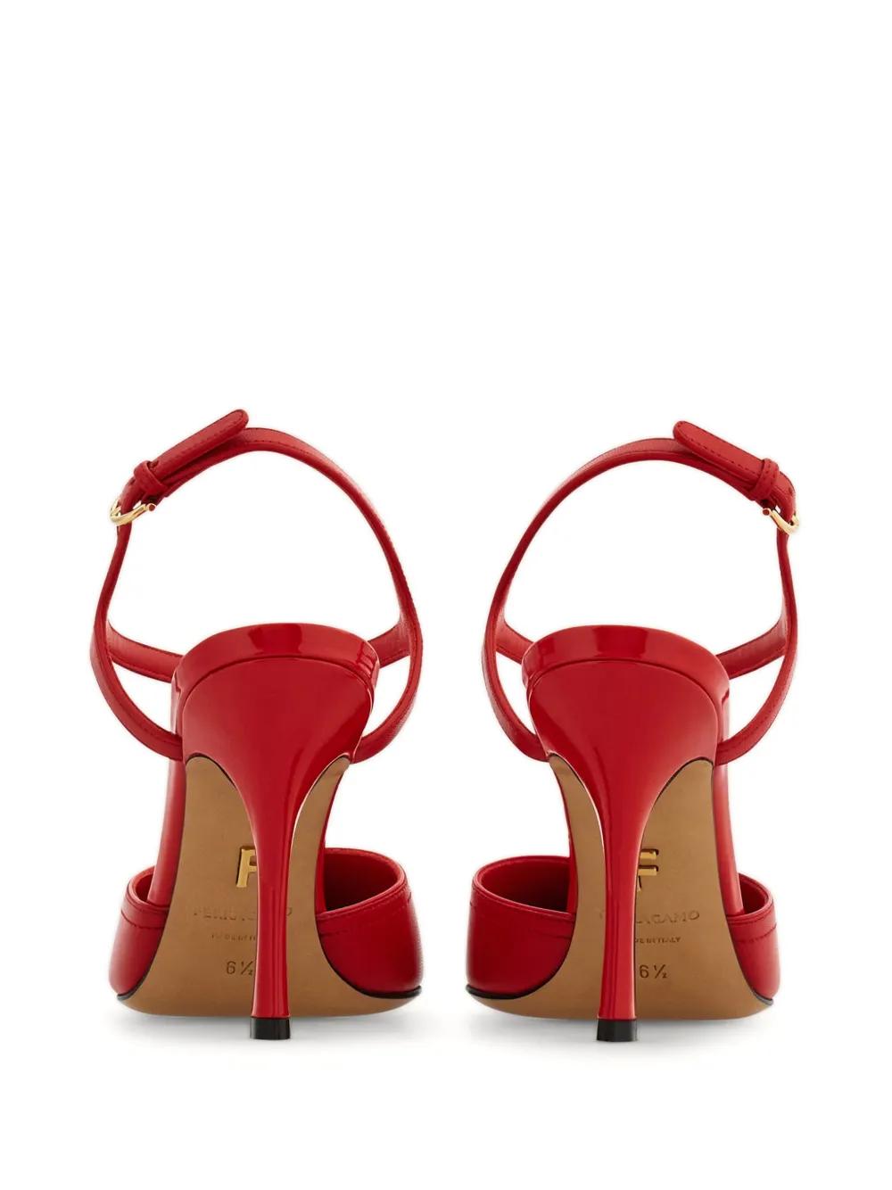 red buckle-fastening ankle strap stiletto heel pointed toe leather sole