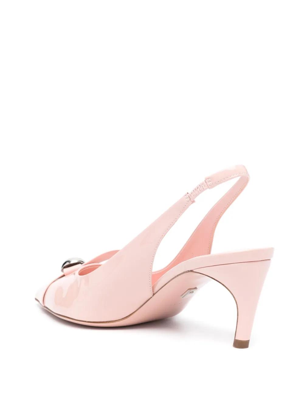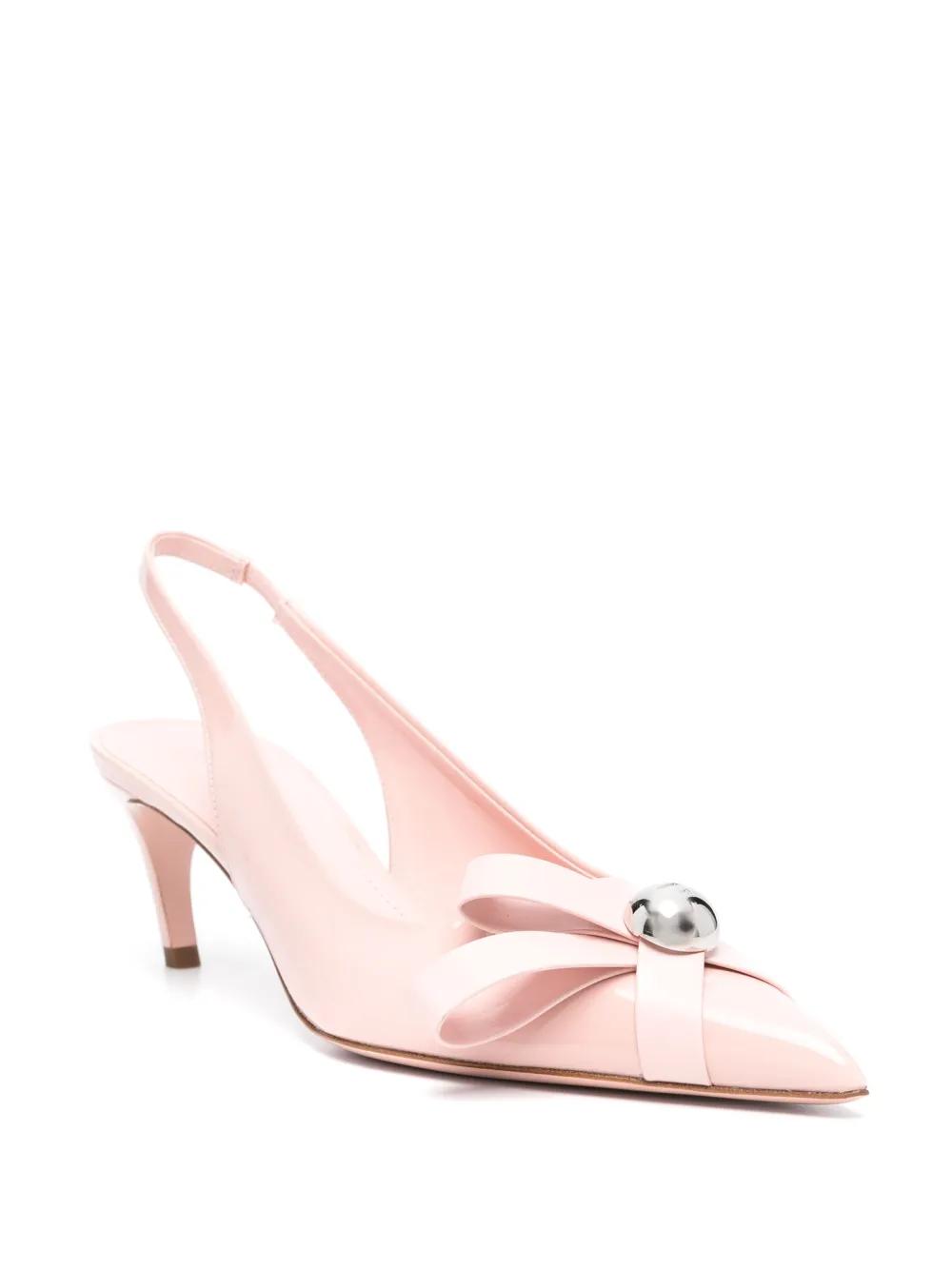 light pink calf leather patent finish pointed toe bow detailing to the front logo-engraved silver-tone hardware branded leather insole 55mm mid heel leather sole elasticated slingback strap This piece comes complete with a protective dust bag.