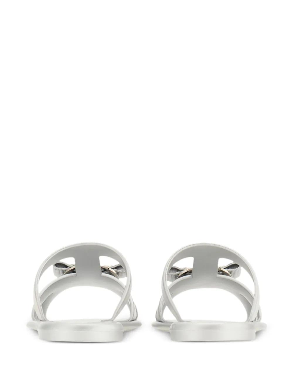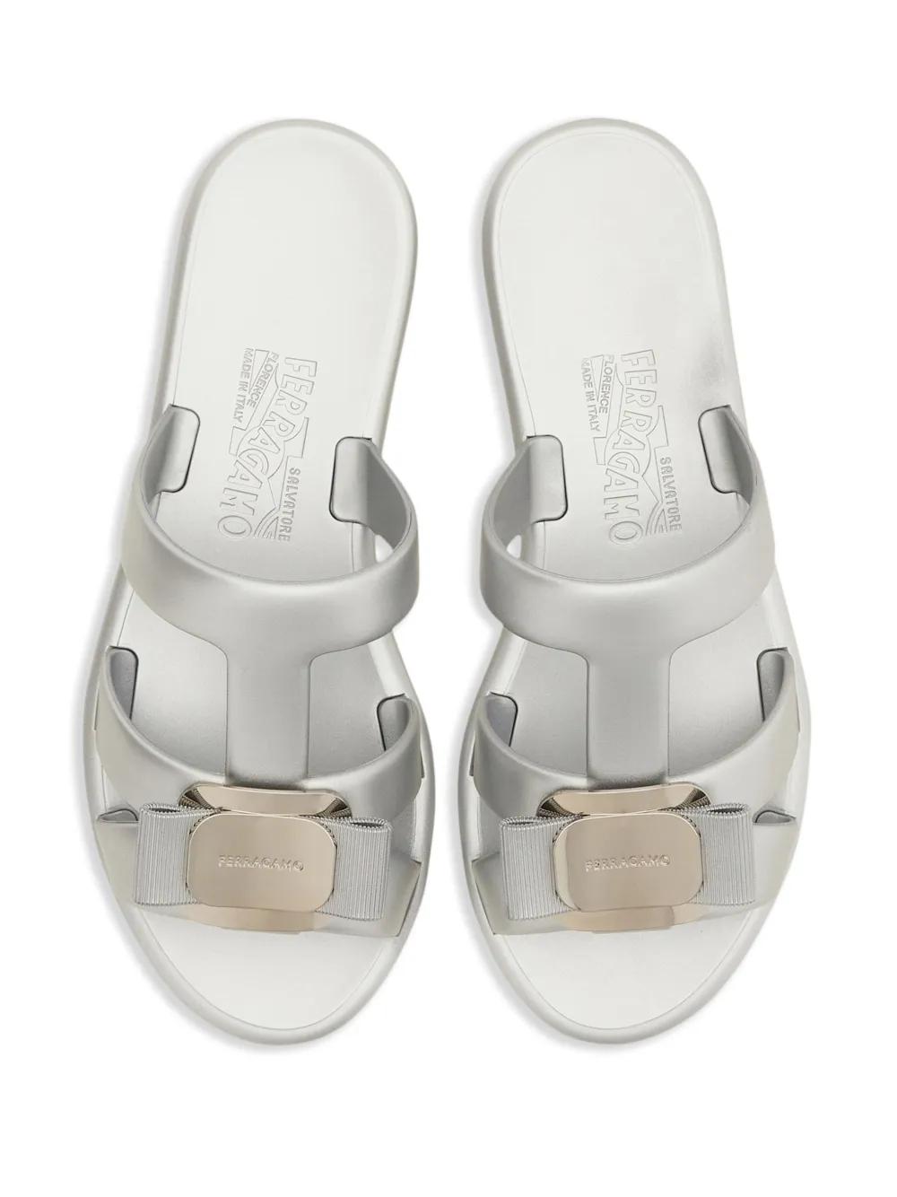 silver-tone bow detailing open toe slip-on style branded insole flat sole