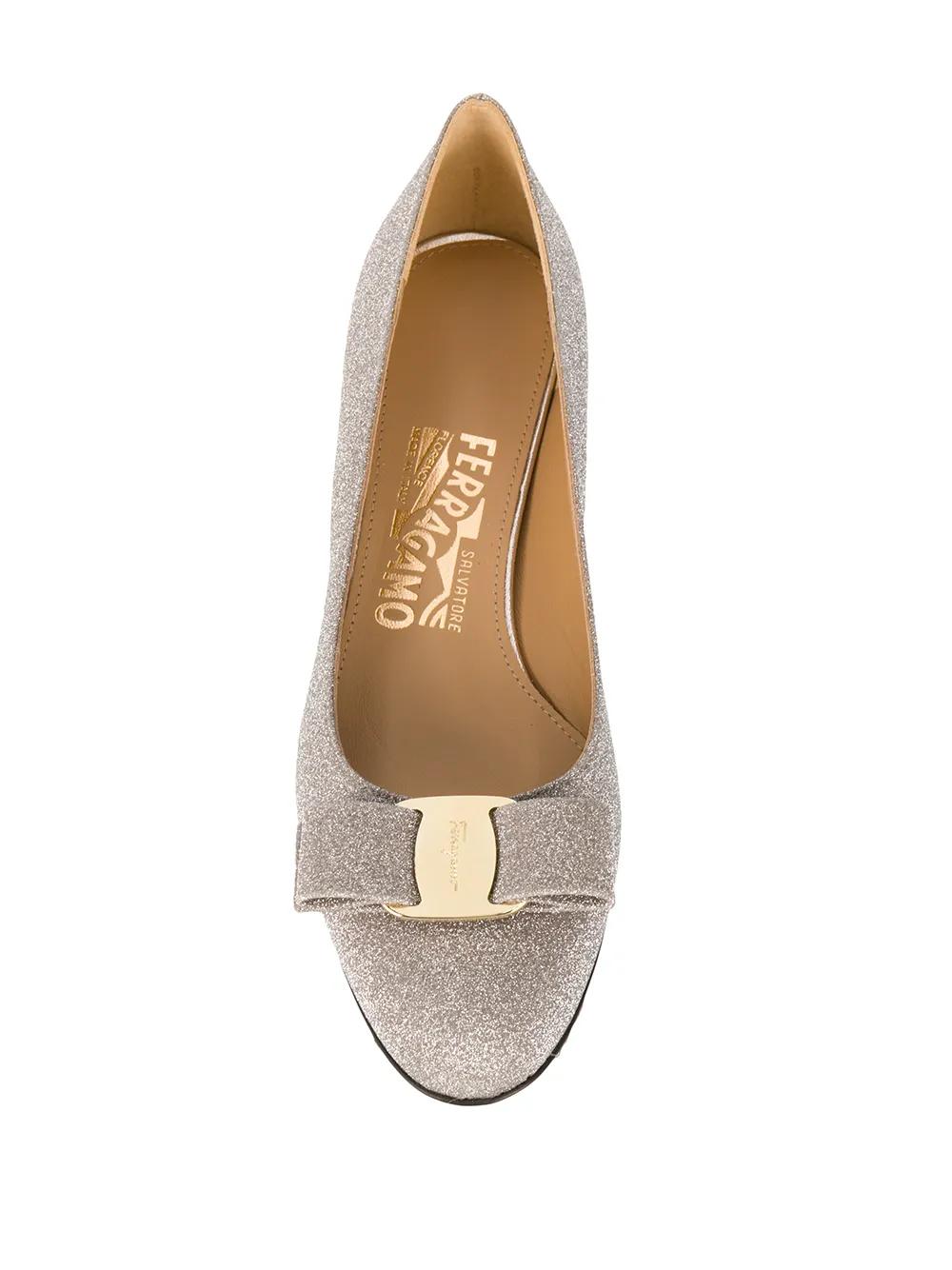 Bows large and small appeared all over the catwalks this season. Always one step ahead (no pun intended) is Salvatore Ferragamo with their signature Vara bow pumps. Boasting a glitter finish, this pair is simply 'bow-tiful'. Featuring a round toe, glitter details, a gold-tone logo plaque, a bow on the front and a low block heel.
