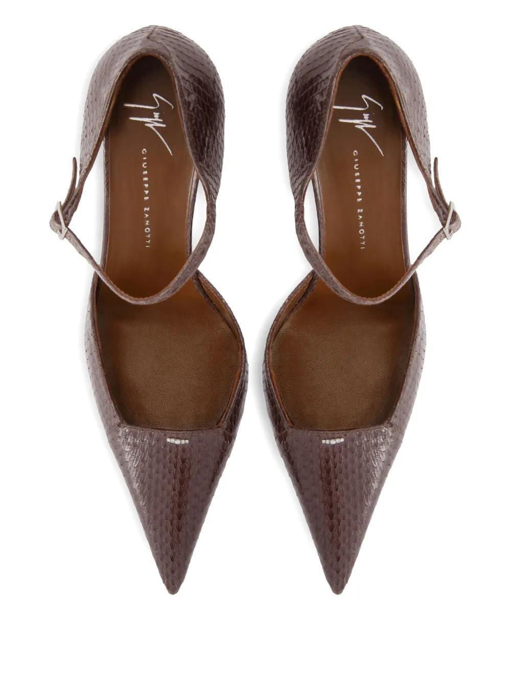 brown Elaphe Carinata skin stiletto heel pointed toe buckle-fastening strap This item comes from our partner boutiques in a variety of countries and cannot be shipped outside its region (either US, UAE, or the EU & UK). Please check the country of origin in the Shipping & Free Returns tab or your Shopping Bag to make sure it can be delivered to your location.
