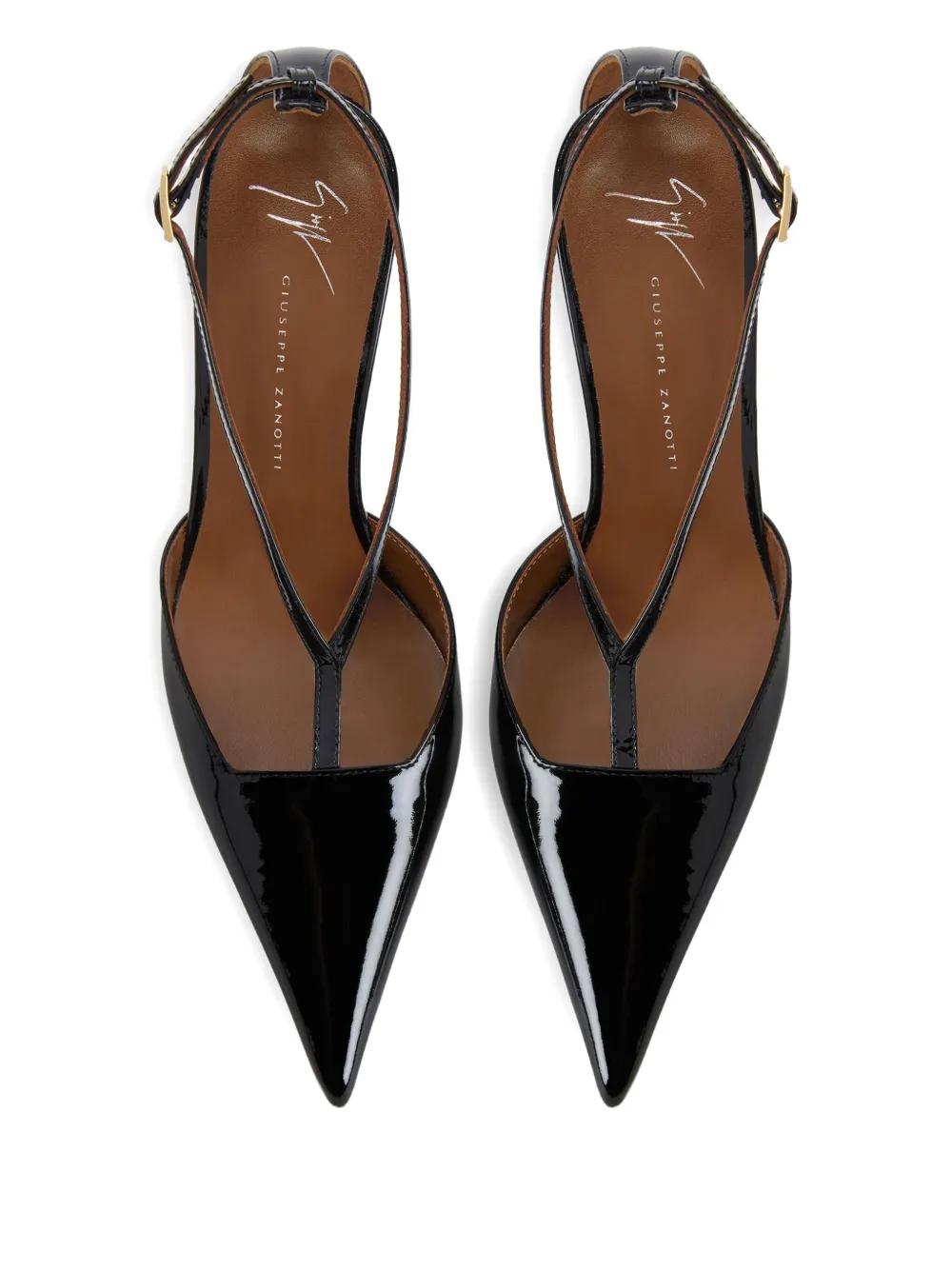 black leather pointed toe buckle-fastening ankle strap stiletto heel