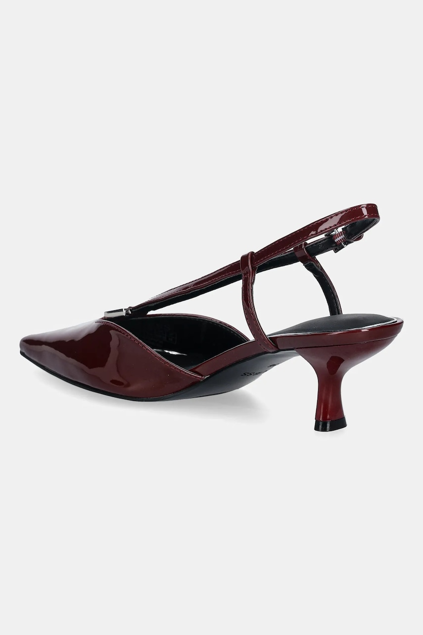 - Spiczasty, usztywniony nosek. - Model z odkrytą piętą. - Zapięcie na klamrę ze szpilką, które umożliwia indywidualne dopasowanie. - Gumowa podeszwa zewnętrzna jest wytrzymała i odporna na uszkodzenia. - Wysokość obcasa: 5,5 cm. - Długość wkładki wynosi: 24 cm. - Wymiary podane dla rozmiaru: 36.