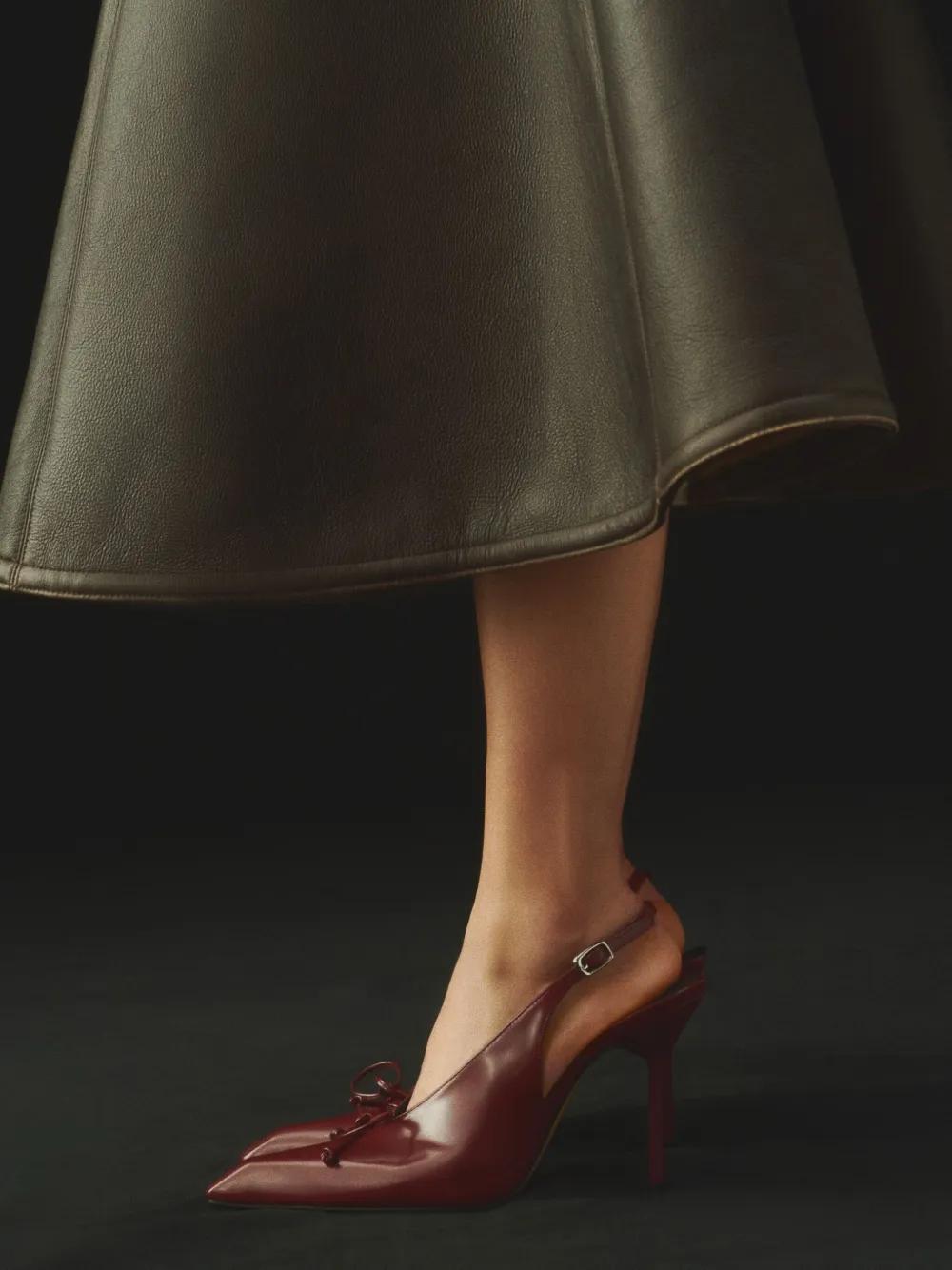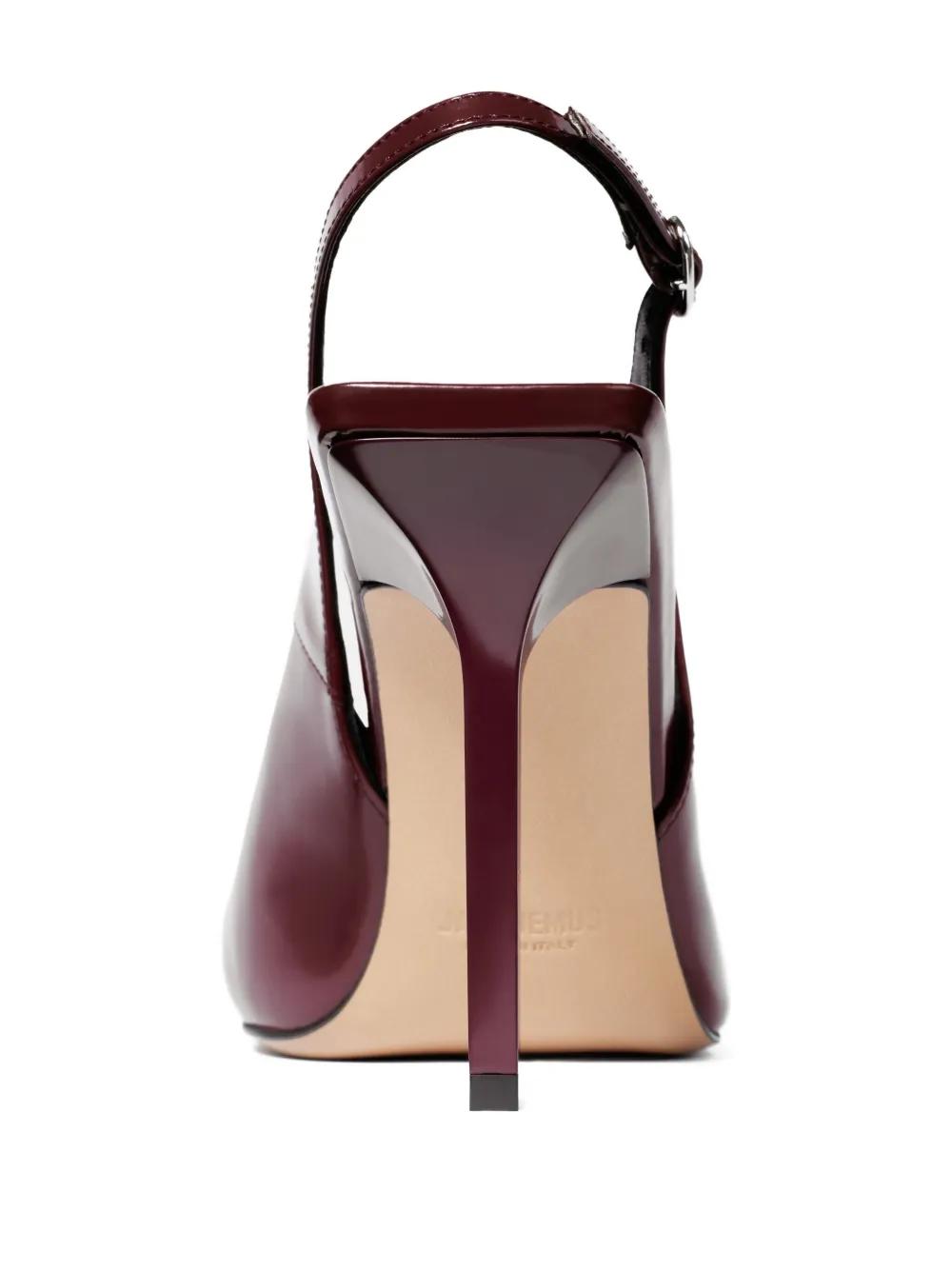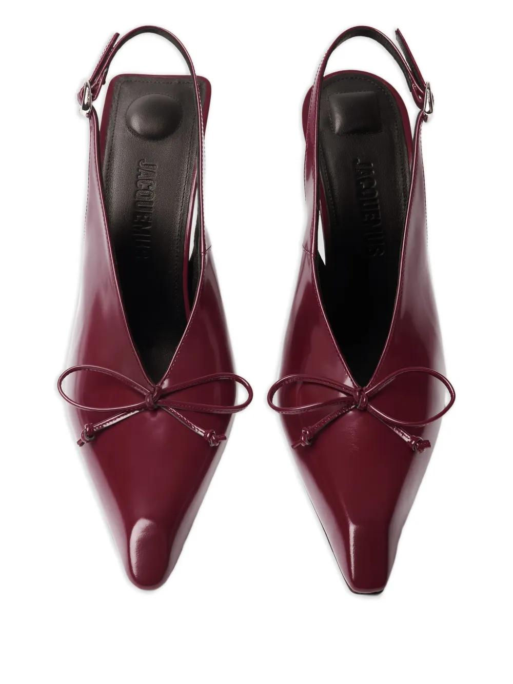 burgundy patent leather slingback strap stiletto heel pointed toe bow detail