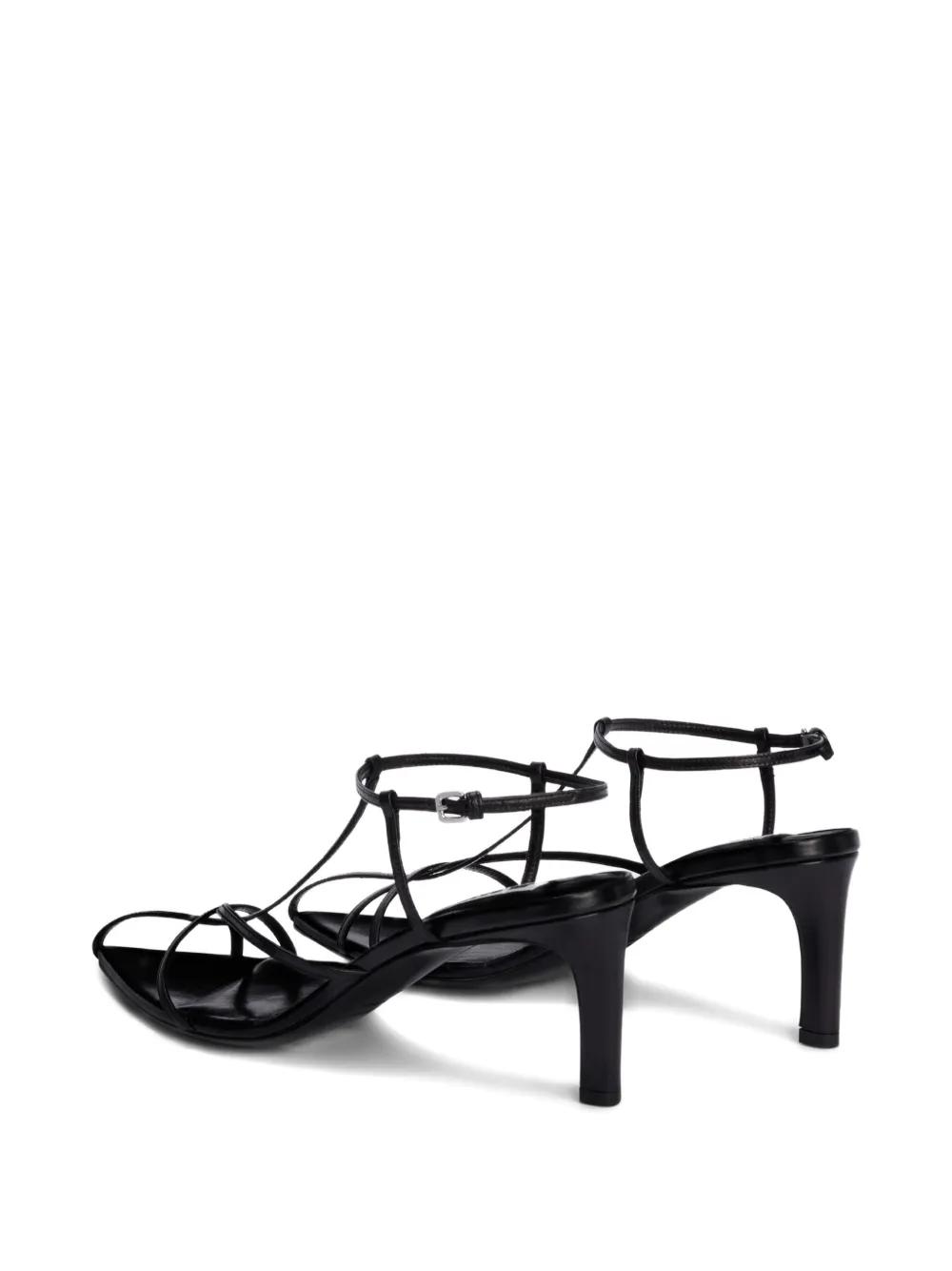 black leather footbed and sole leather ankle-straps buckle fastening interwoven straps pointed toe