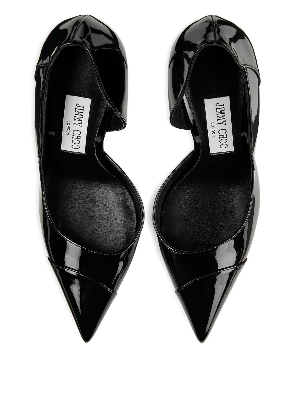 black patent leather 100mm heel pointed toe cut-out detail leather sole