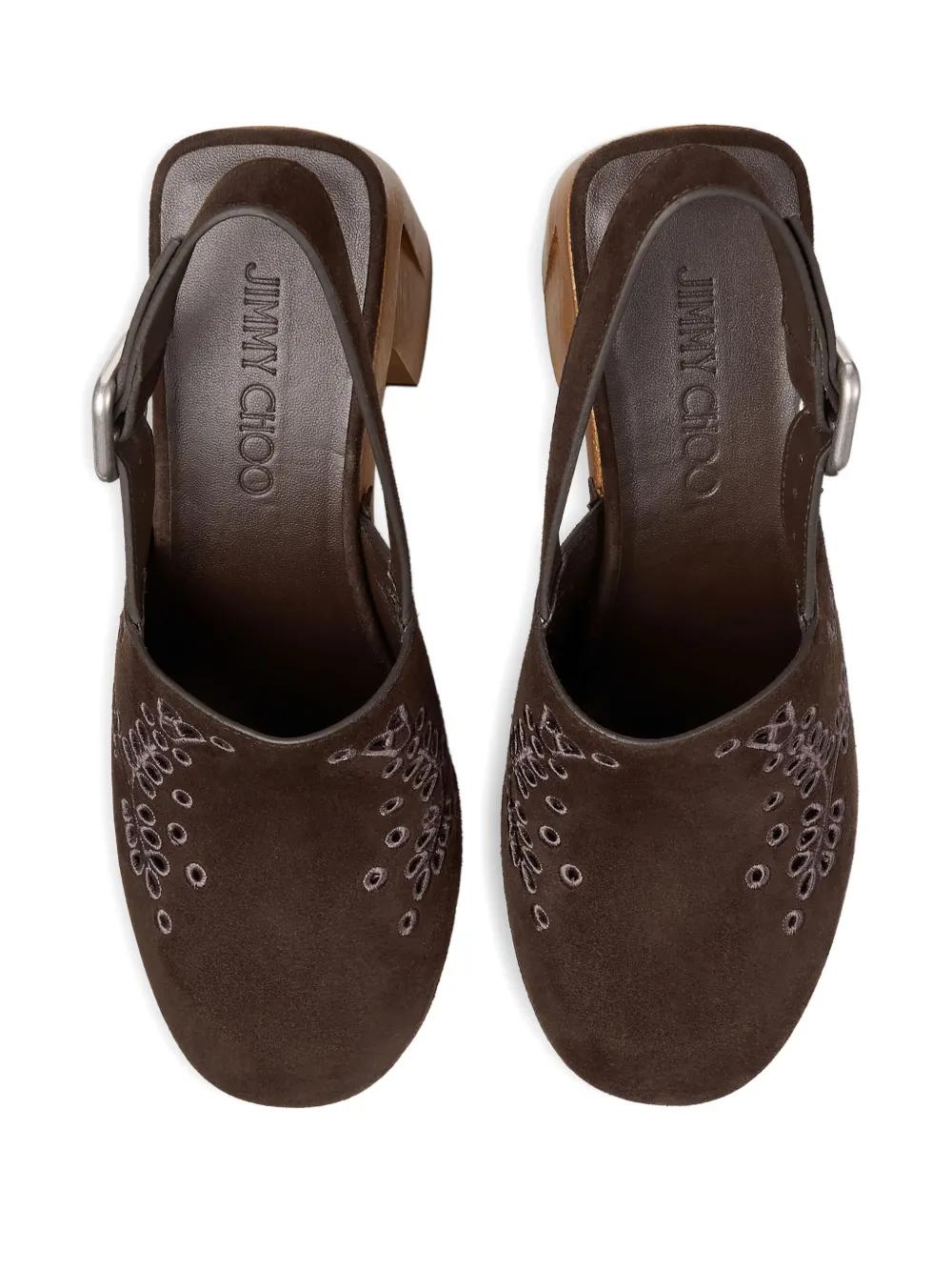 chocolate brown buckle-fastening slingback strap branded footbed round toe high block heel