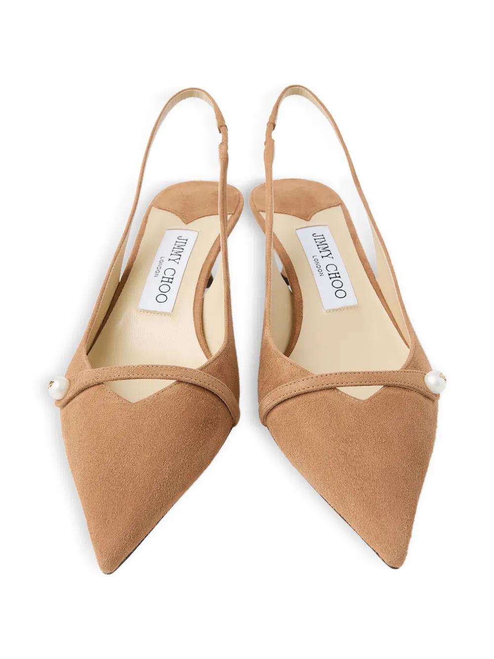 Jimmy Choo 45mm Amita pearl-embellished slingback pumps - Neutrals