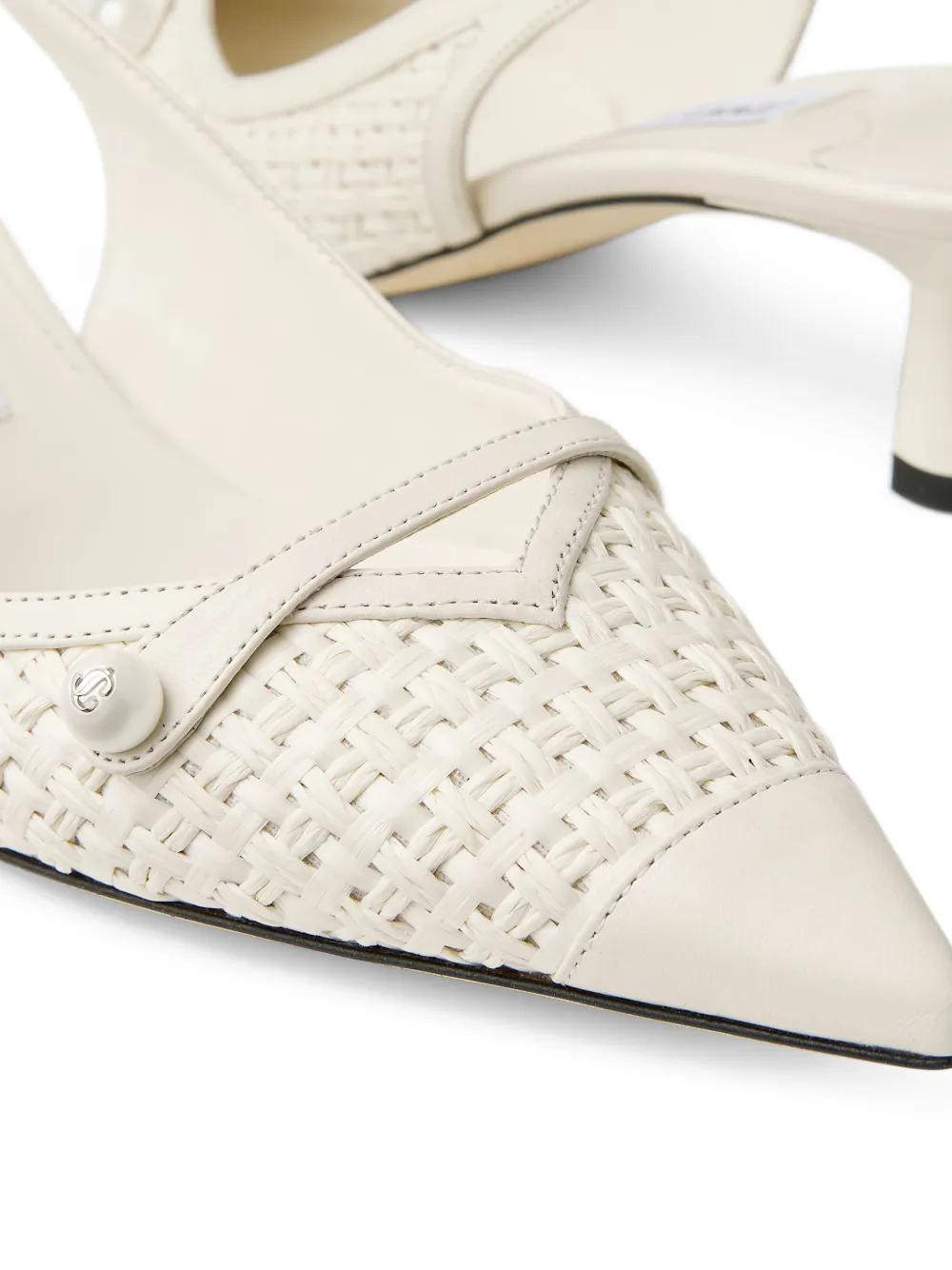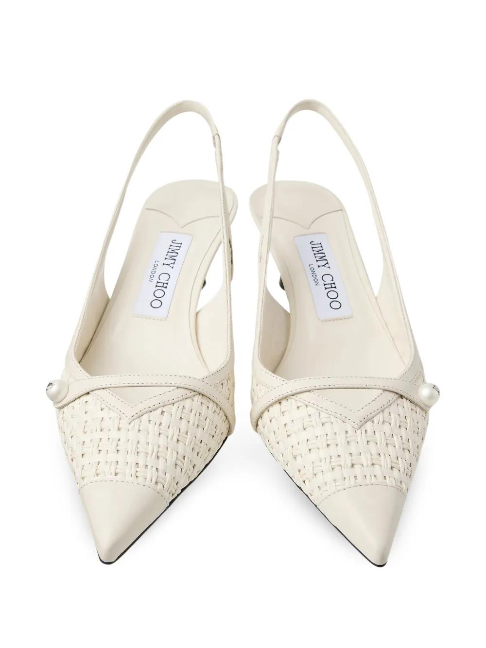 white elasticated slingback strap low tapered heel branded insole Wardrobe Icon