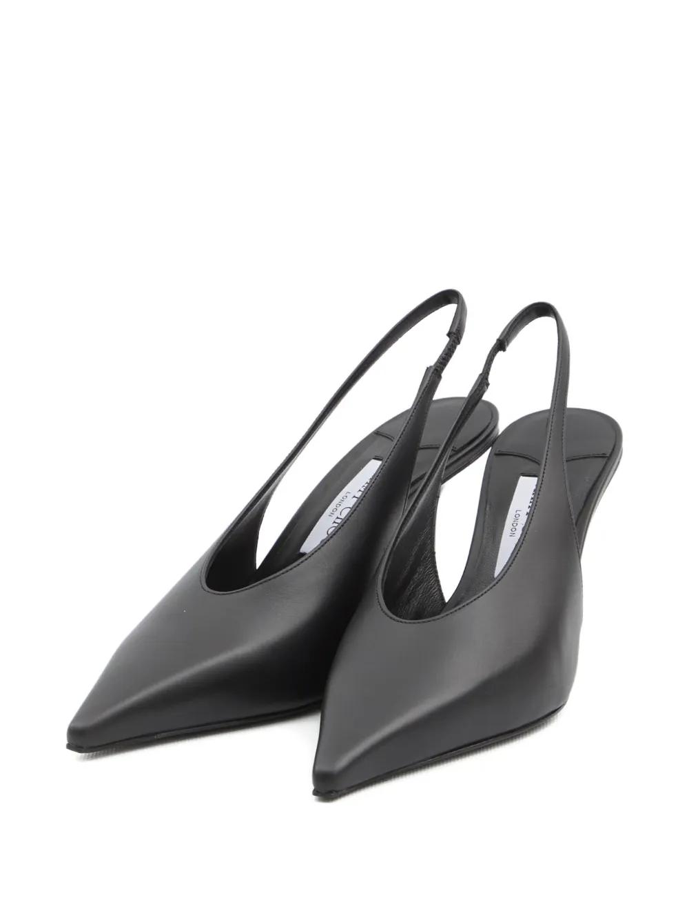 black calf leather pointed toe slingback strap leather sole