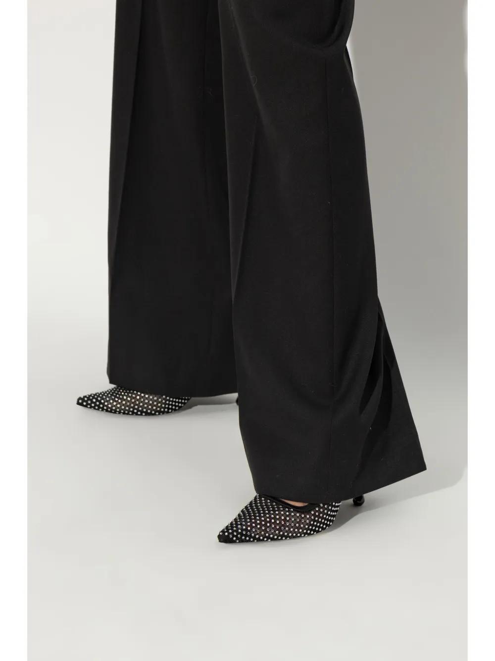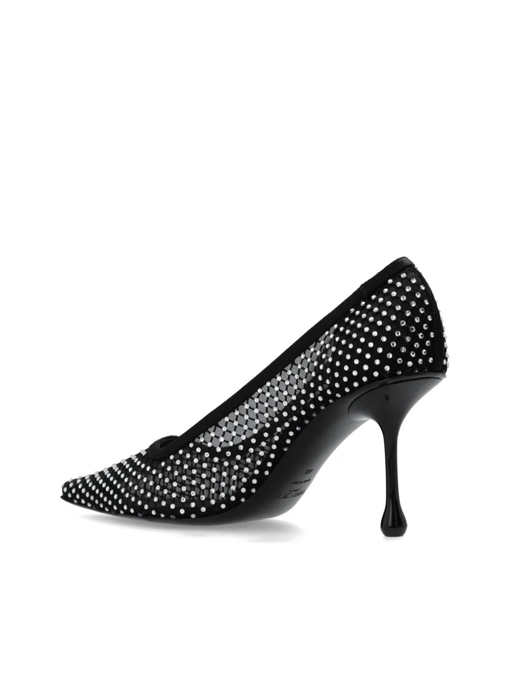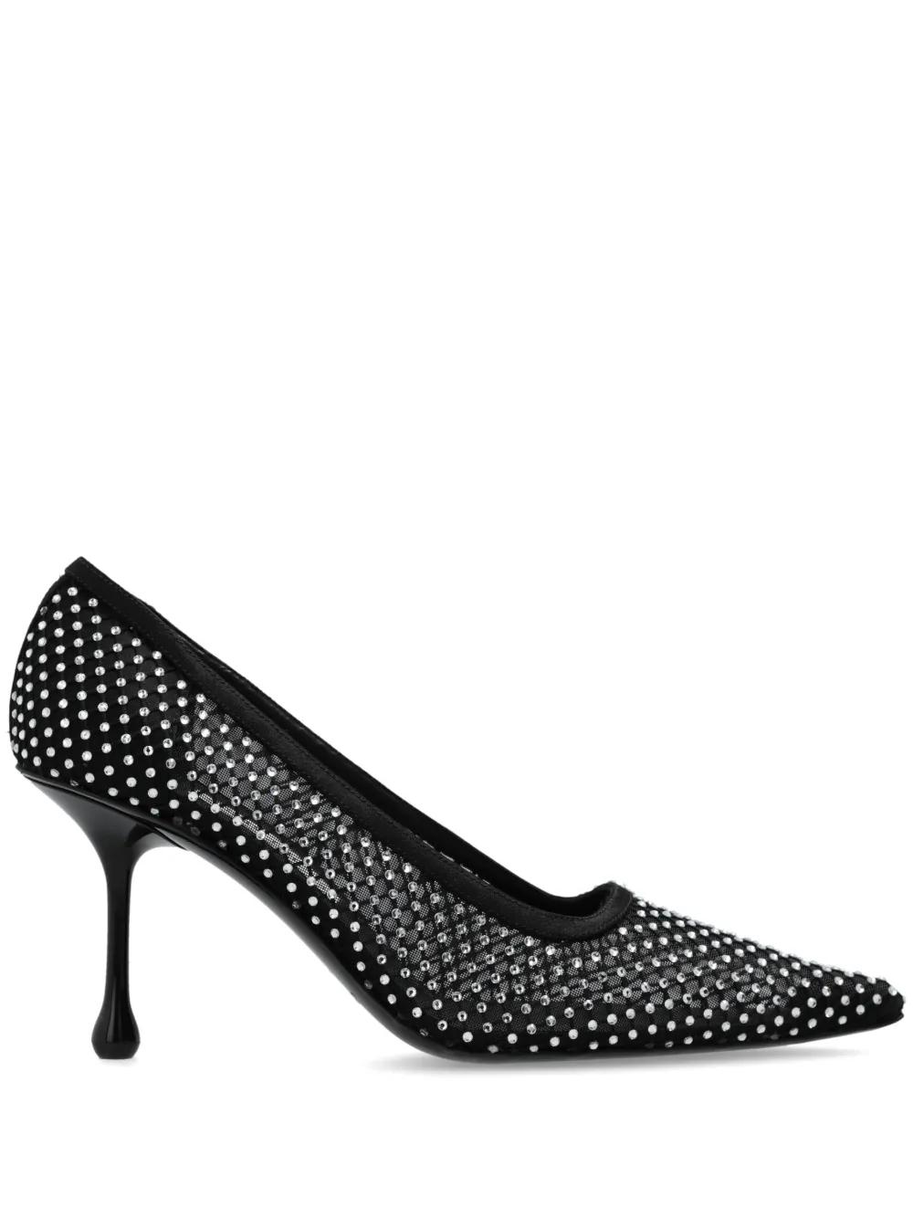 black leather crystal embellishment slip-on style pointed toe 80mm stiletto heel
