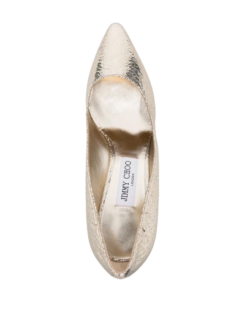 gold-tone calf leather cracked effect slip-on style pointed toe branded leather footbed 85mm high stiletto heel leather outsole