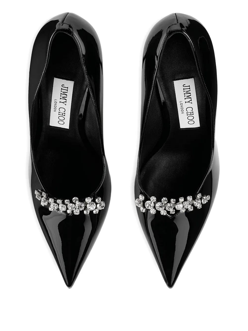 black patent leather pointed toe crystal embellishment stiletto heel