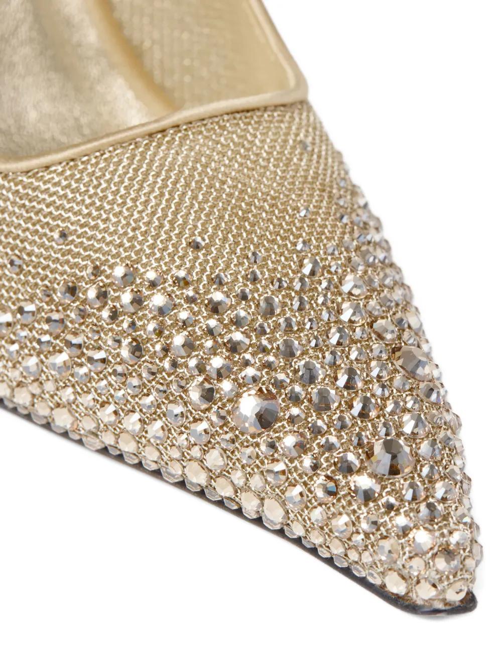 light gold-tone mesh upper crystal embellishment pointed toe stiletto heel sculptural heel