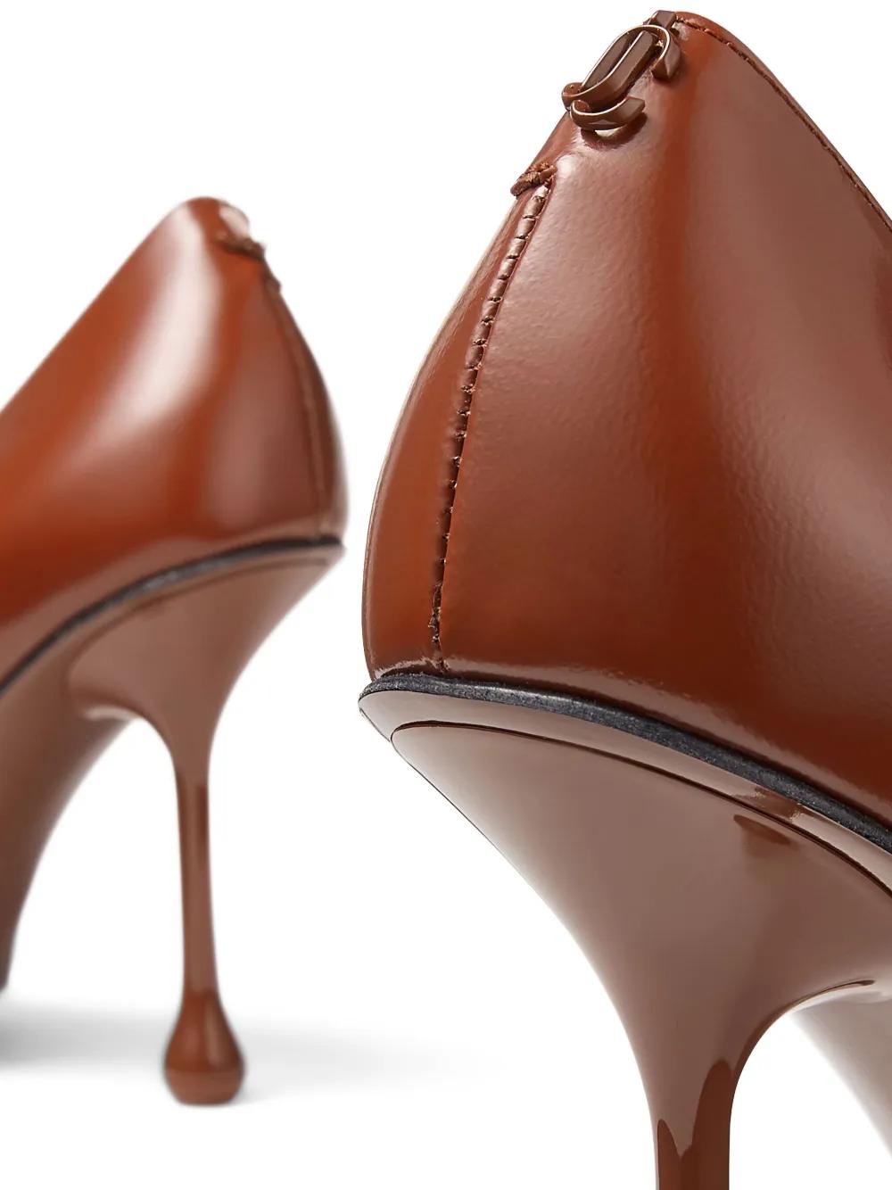 auburn brown leather sculpted heel pointed toe back zip fastening