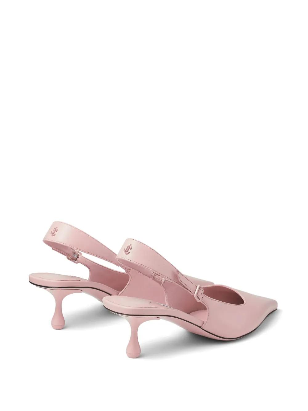 light pink leather patent finish pointed toe buckle-fastening slingback strap branded leather insole 50mm low cone heel
