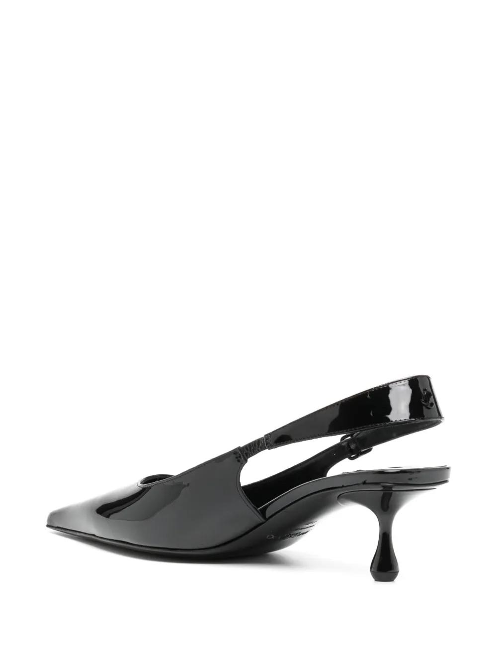black calf leather patent finish buckle-fastening slingback strap pointed toe 50mm kitten heel