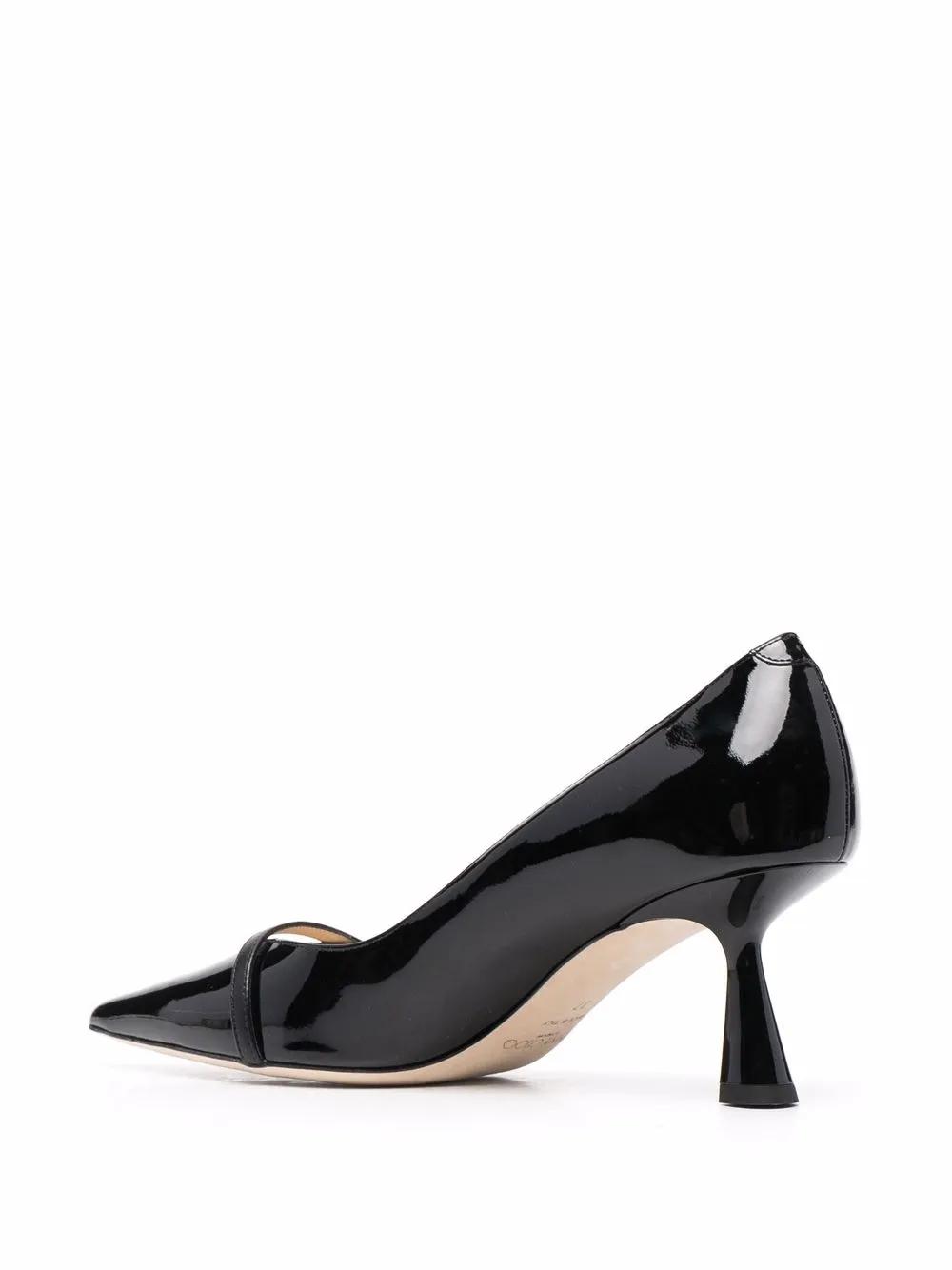 black leather high-shine finish pointed toe thin strap 65mm sculpted heel