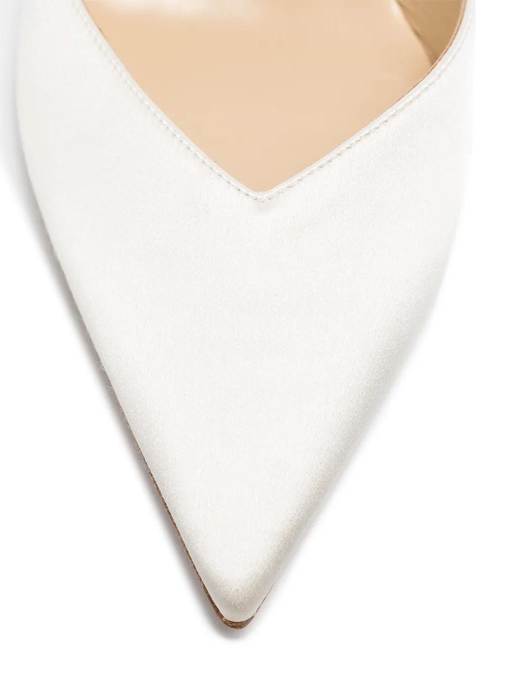 white satin pointed toe V-shape vamp branded insole crystal-embellished ankle strap high stiletto heel