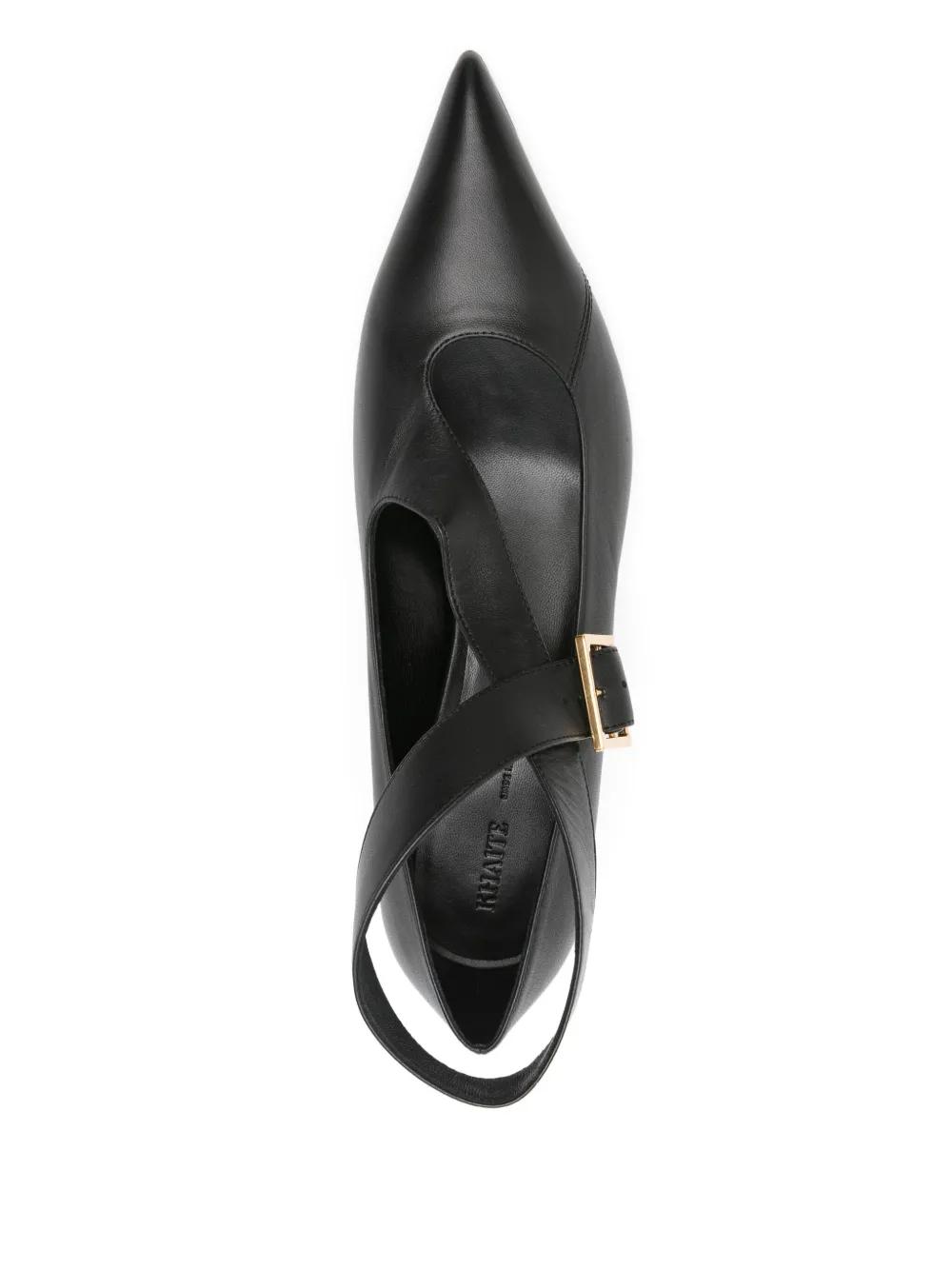 black buckle fastening strap pointed toe gold-tone buckle 45mm heel cut-out detail