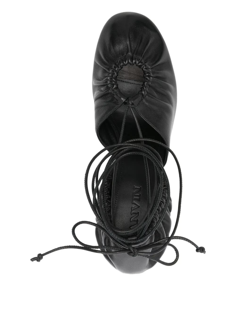 red leather upper sculptural heel knotted detail pointed toe slip-on style