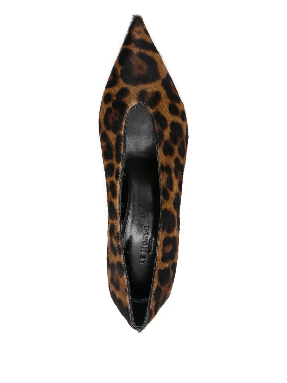 brown leopard print pointed toe leather sole slip-on style low-cut vamp