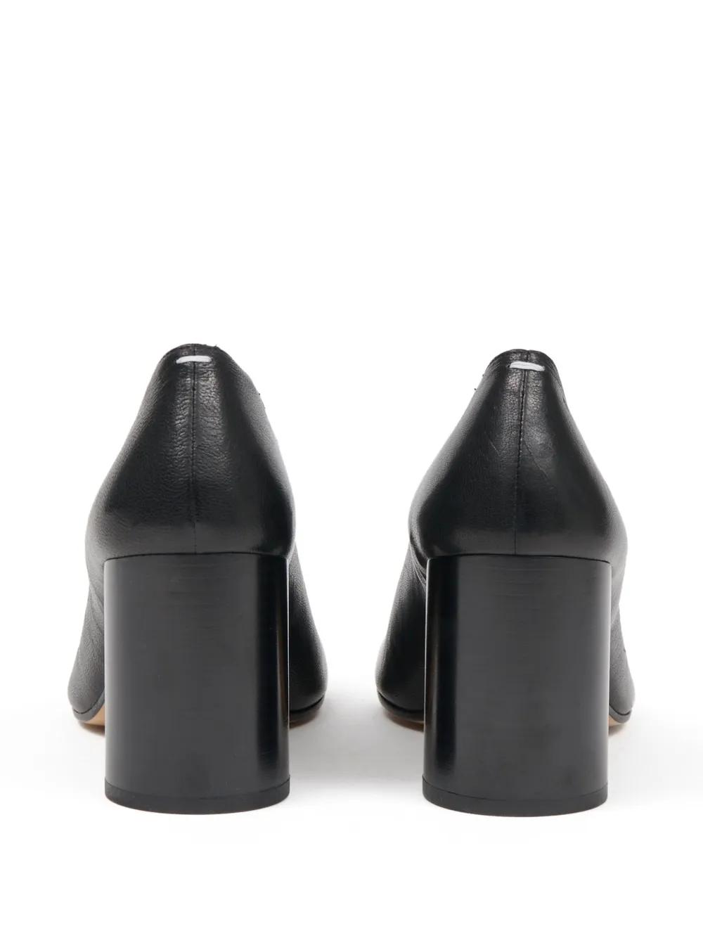 black calf leather patent finish asymmetric design pointed toe 105mm pyramidal wedge heel branded leather insole slip-on style