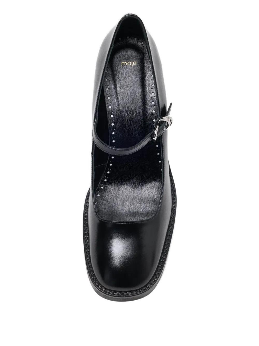 black patent-leather upper ankle strap buckle fastening engraved sole details
