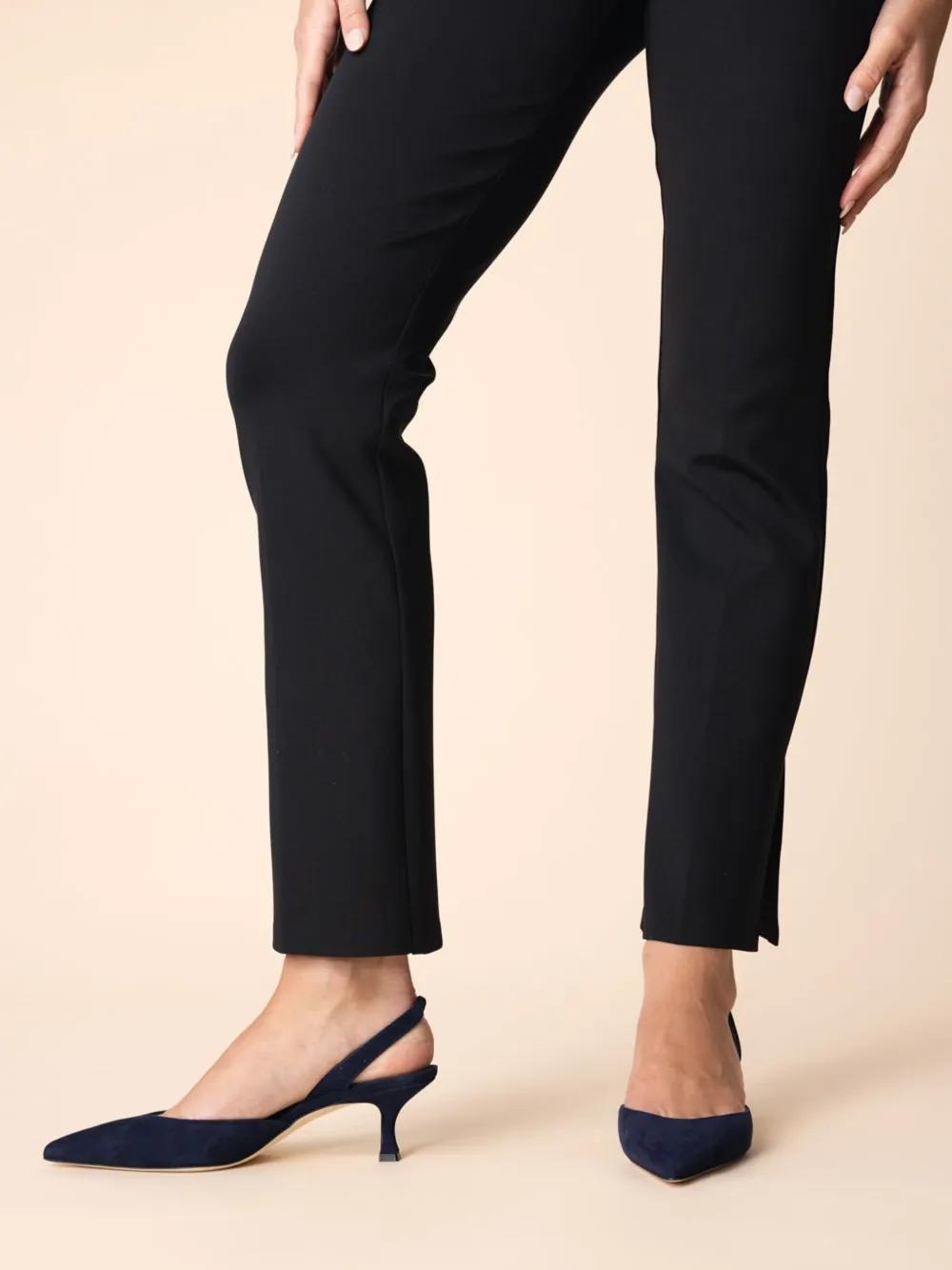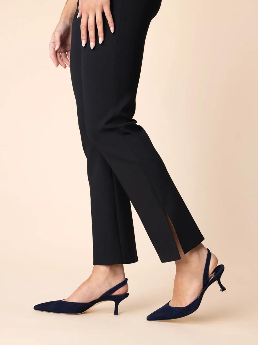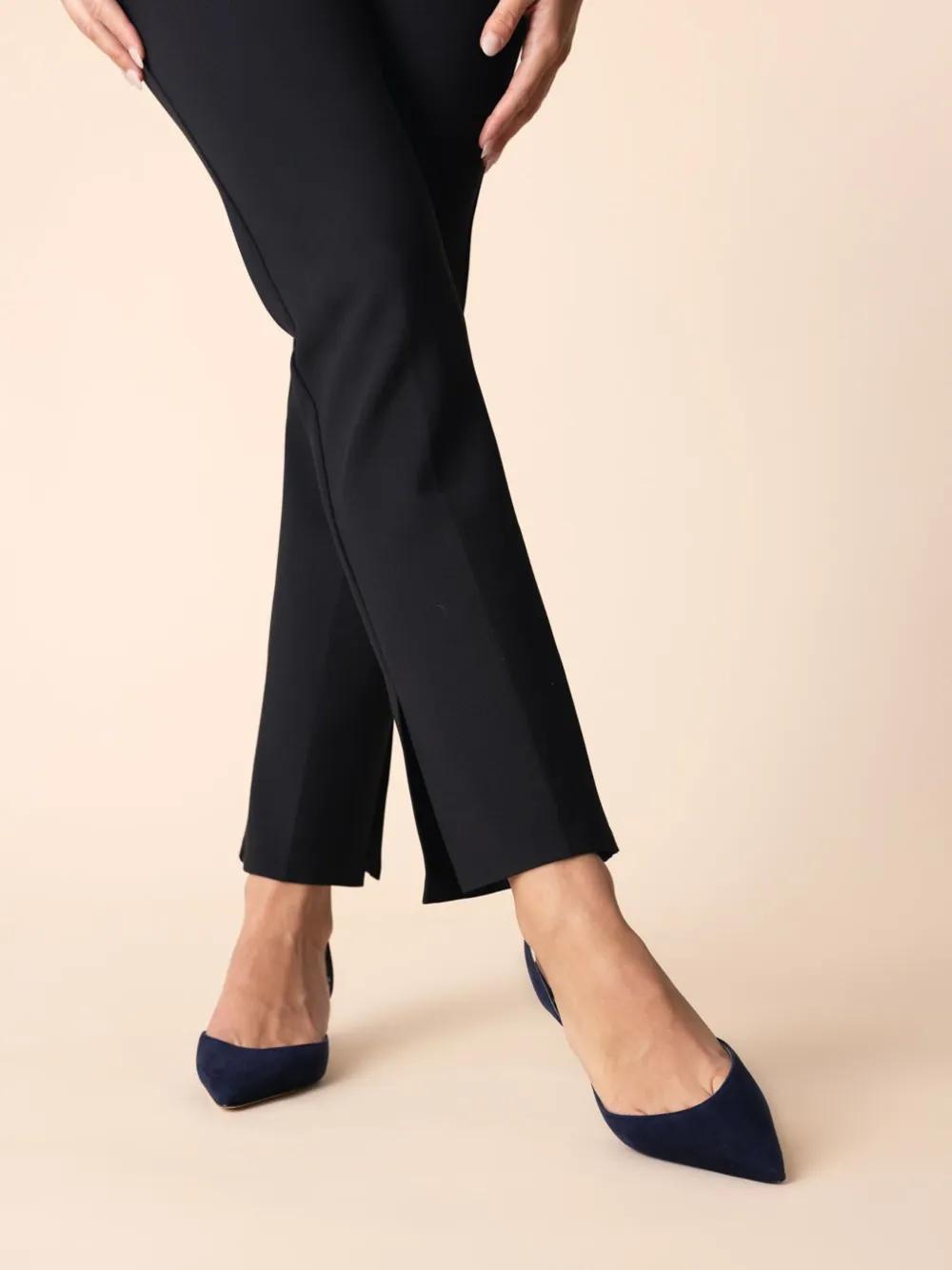 navy blue suede kitten heel elasticated slingback strap branded leather insole pointed toe
