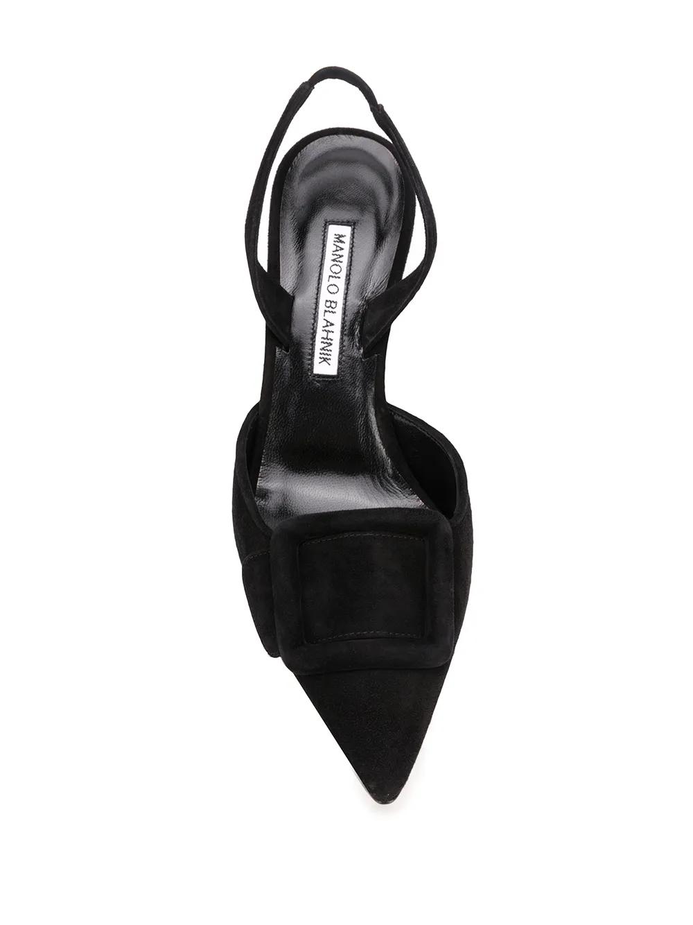 black calf suede/leather slingback strap pointed toe slip-on style mid heel