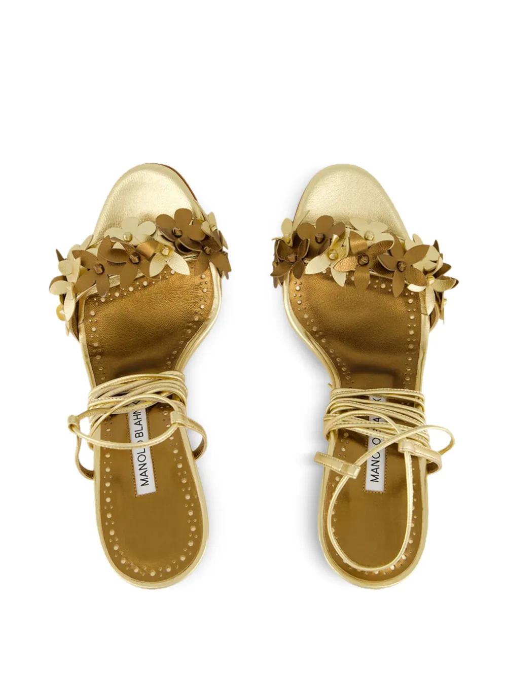 Manolo Blahnik flower-embellished high-heel sandals - Gold