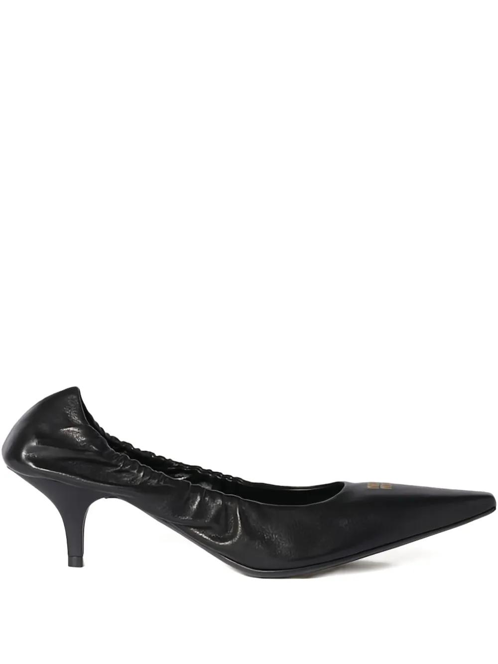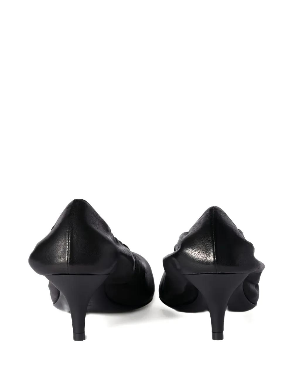 black pointed toe stiletto heel logo detail tonal stitching slip-on style