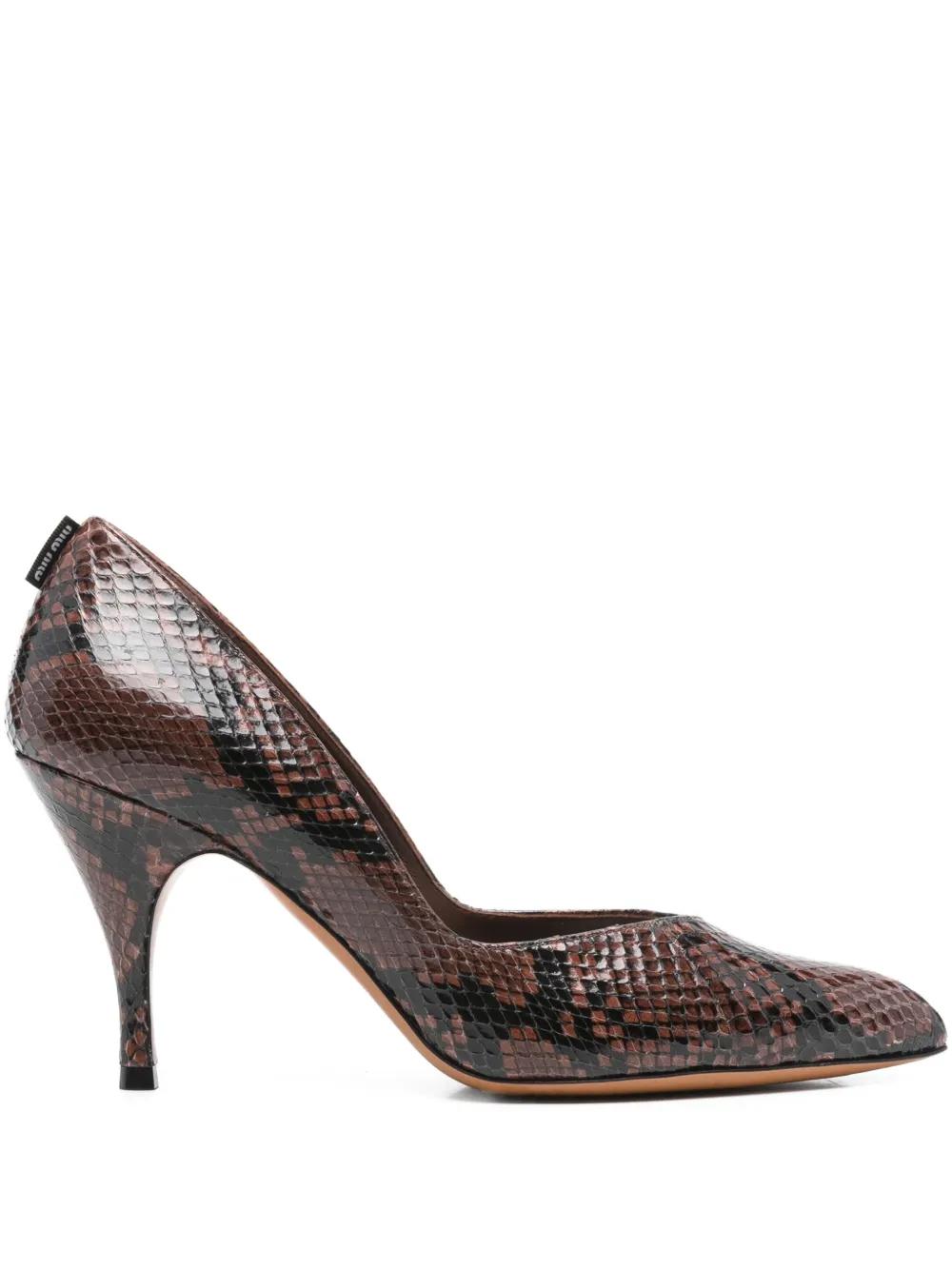 Miu Miu 85mm ayers snakeskin effect pumps - Brown