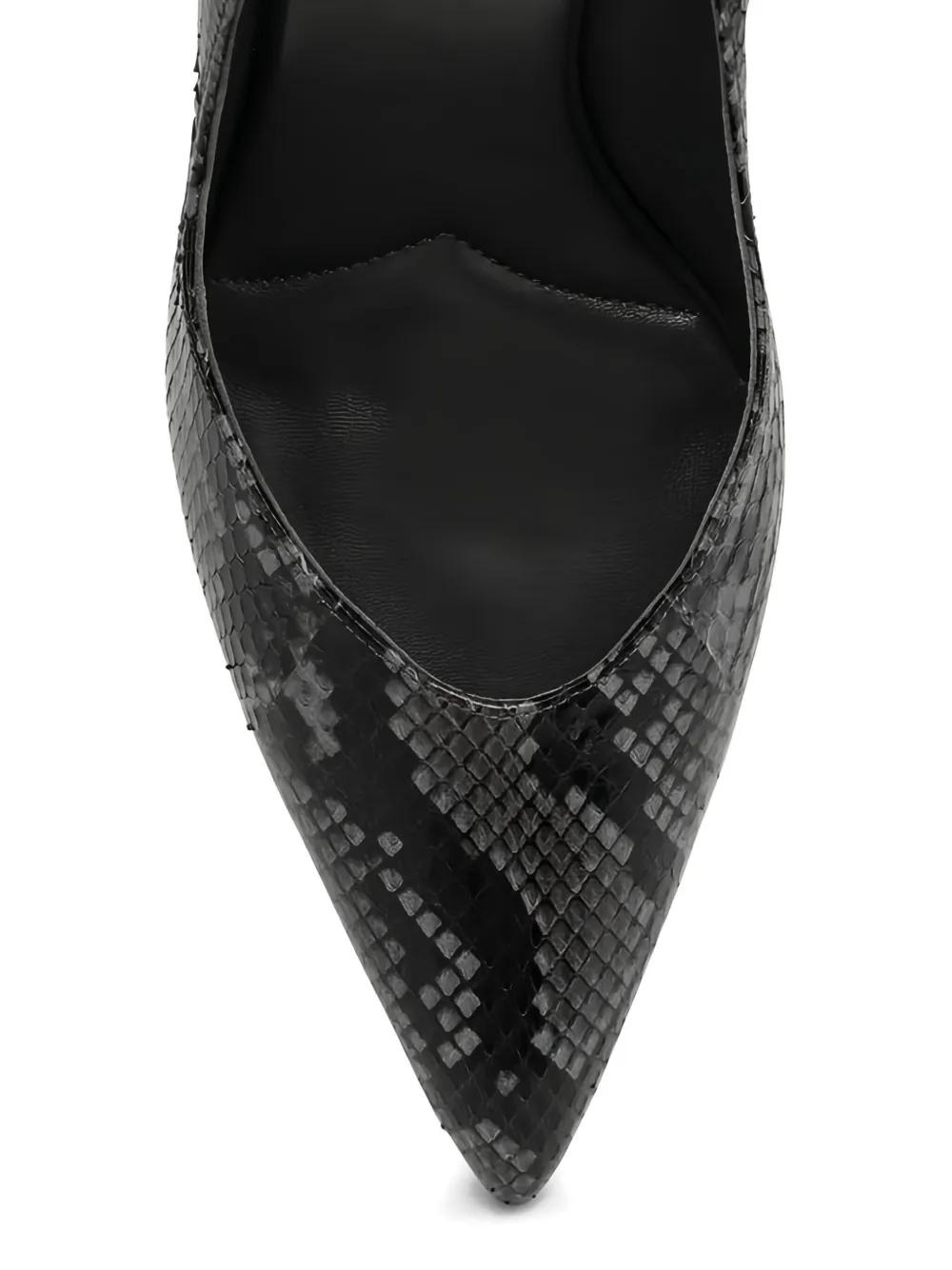 slate grey snakeskin effect stiletto heel pointed toe logo label