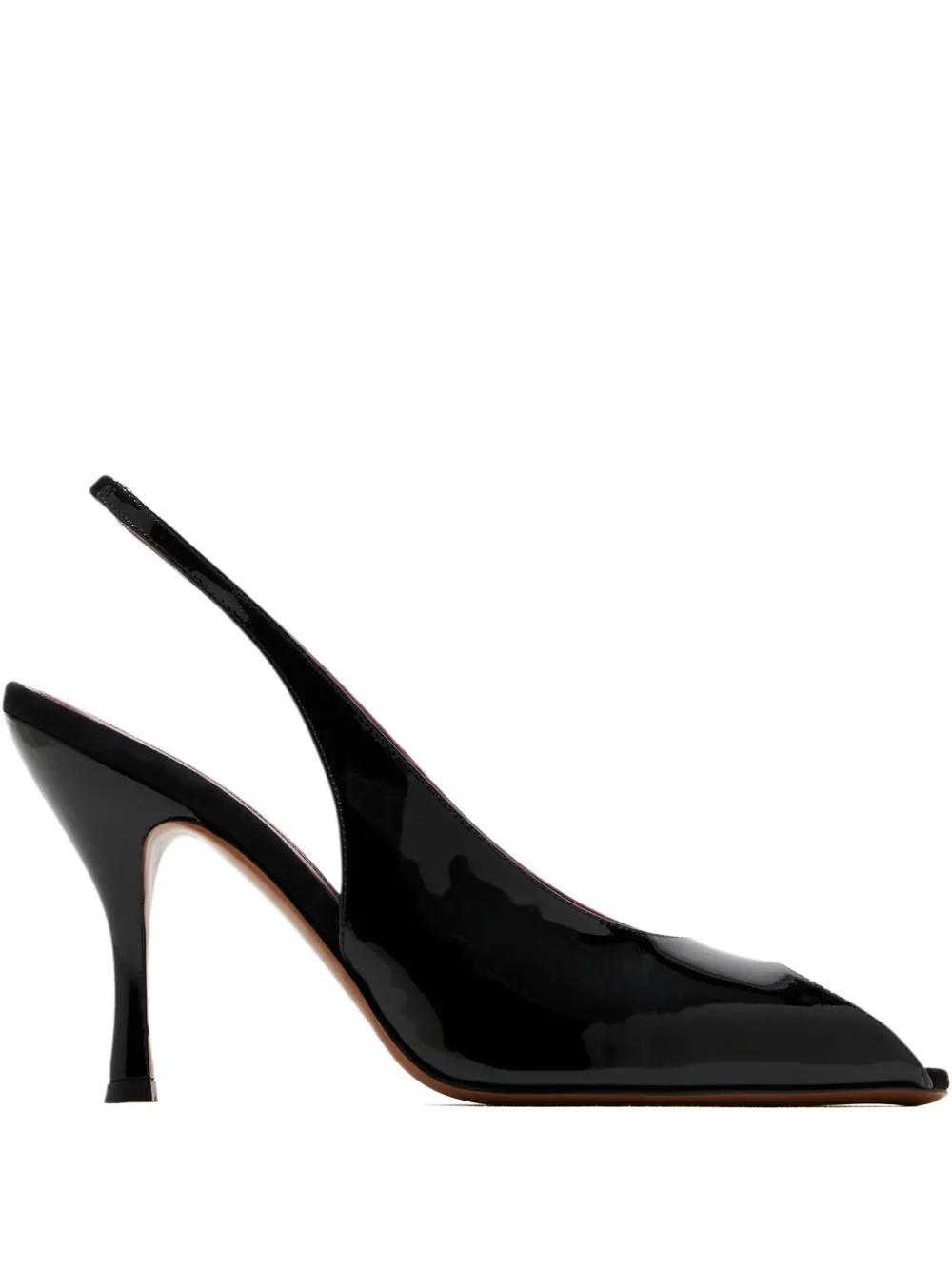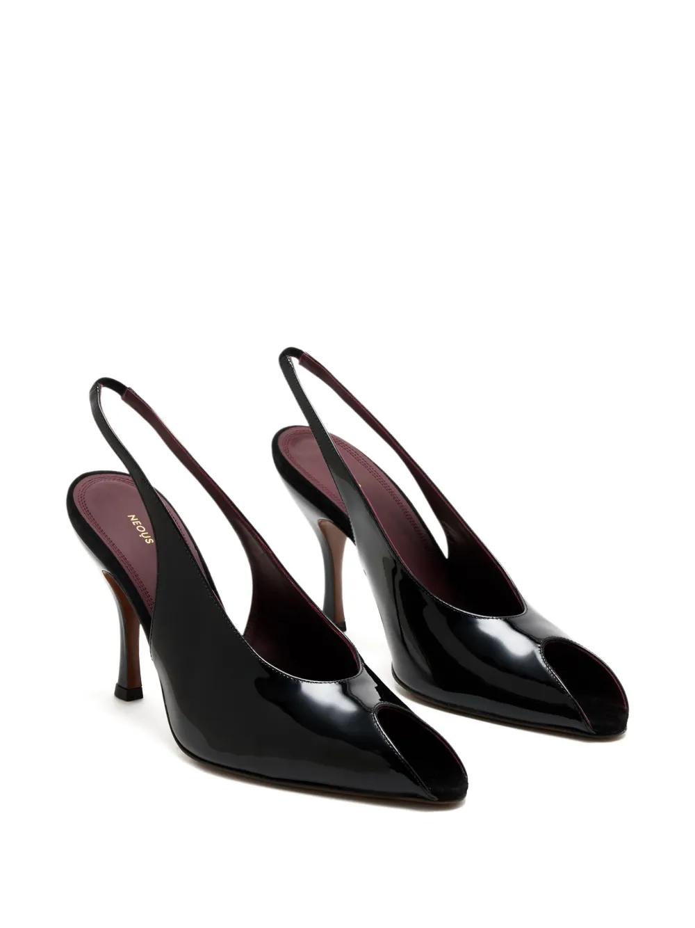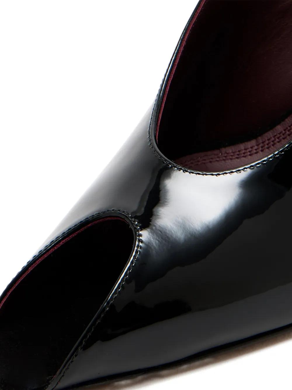 black calf leather patent finish cut-out detailing branded sheepskin insole pointed toe buckle fastening 100mm stiletto heel calf leather sole