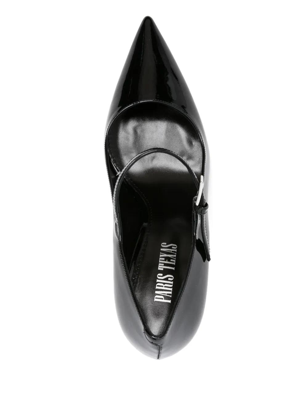 black buckle-fastening ankle strap pointed toe stiletto heel branded insole