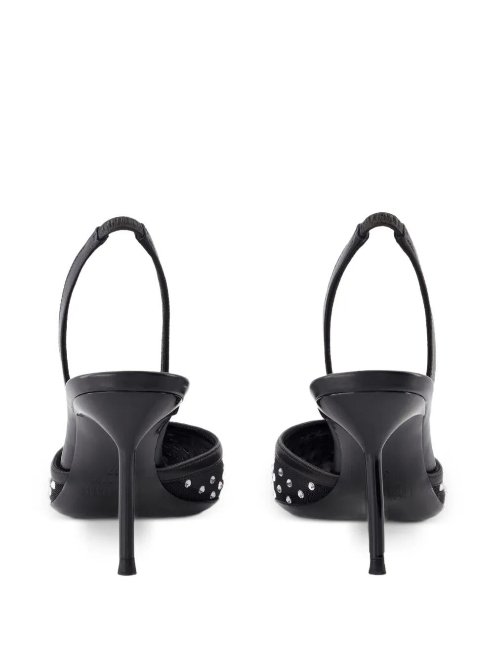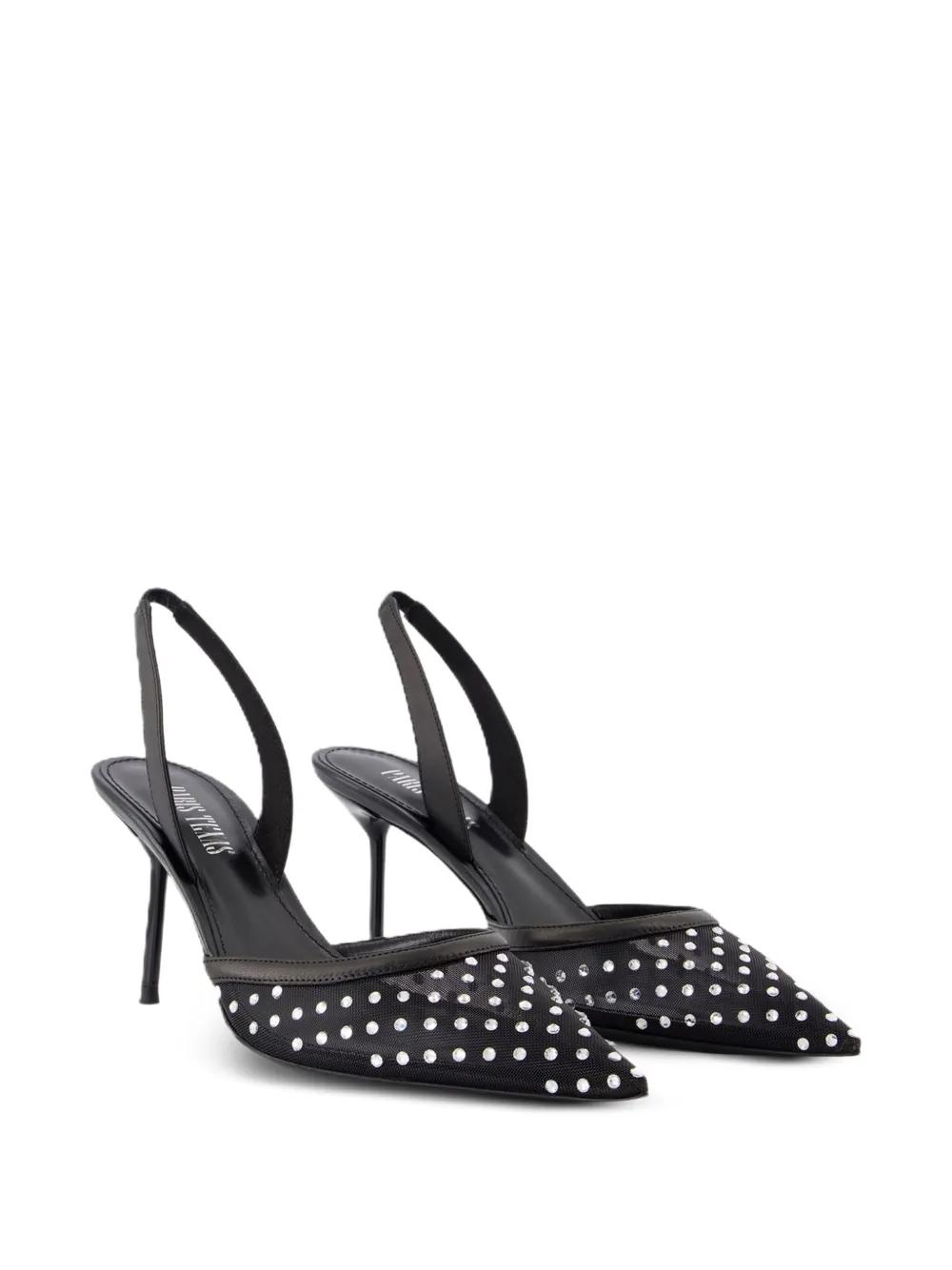 black slingback design crystal embellishments mesh panel pointed toe stiletto heel