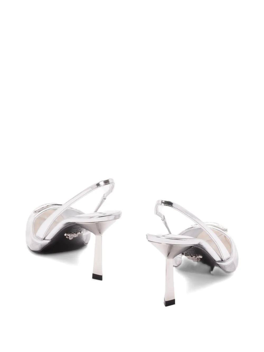silver-tone pointed toe slingback strap logo detail