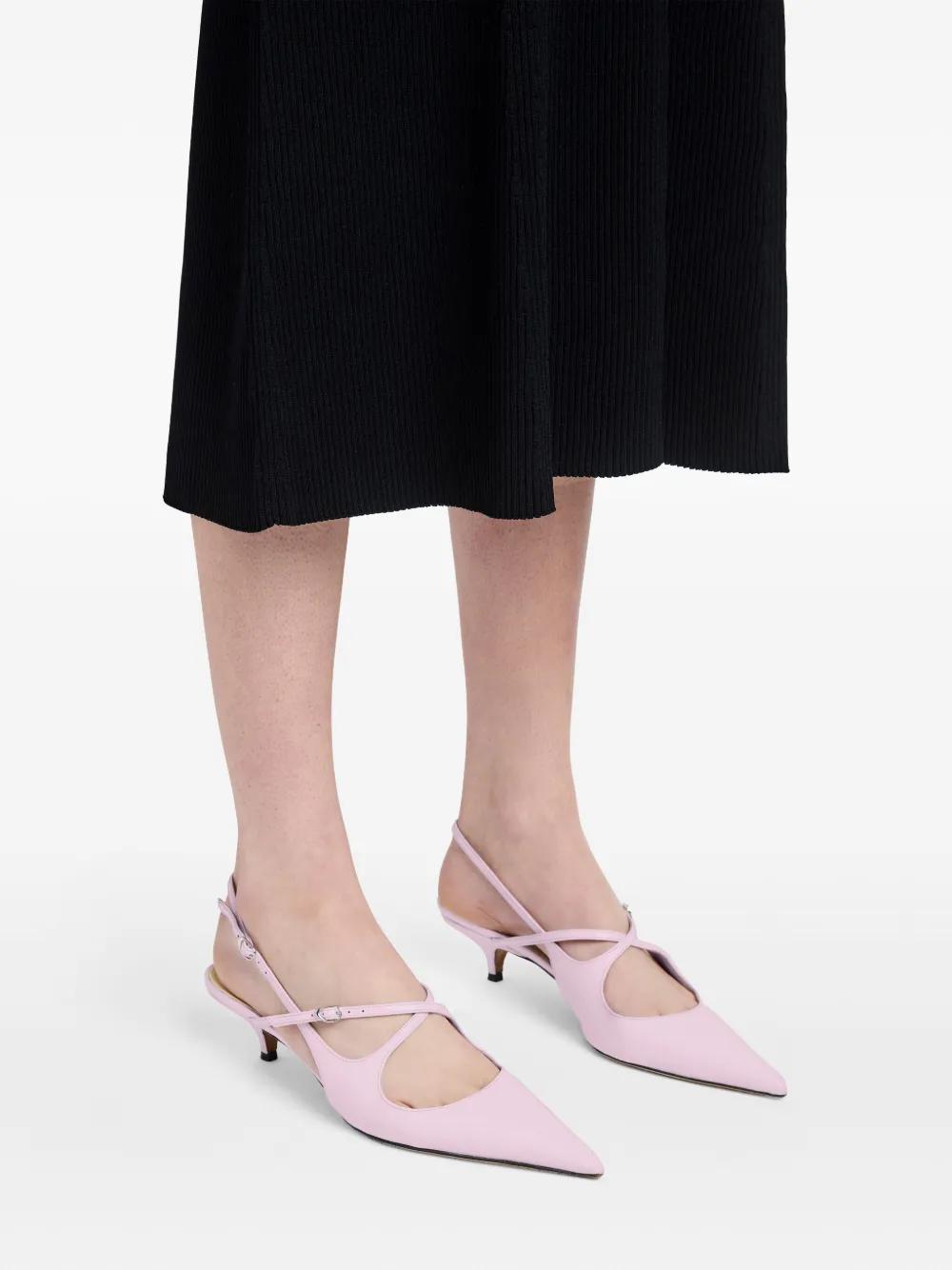 lilac buckle-fastening slingback strap pointed toe kitten heel