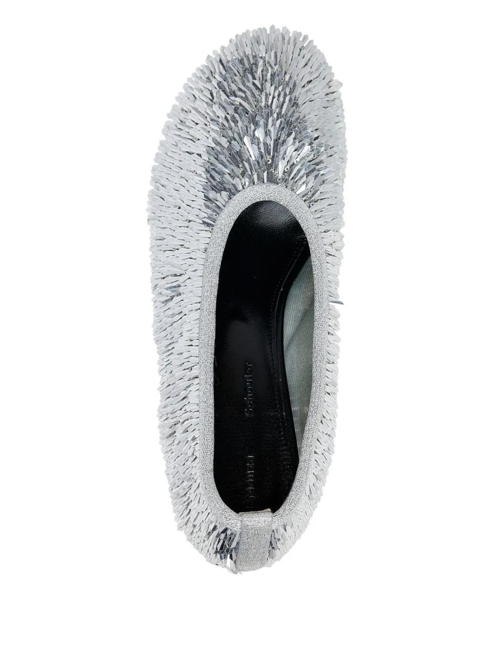 silver sequin embellishment metallic kitten heel round toe slip-on style