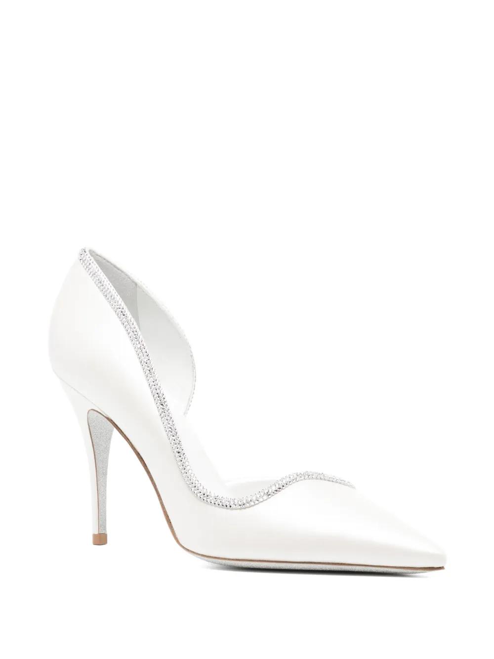 white rhinestone embellishment pointed toe leather sole branded leather insole