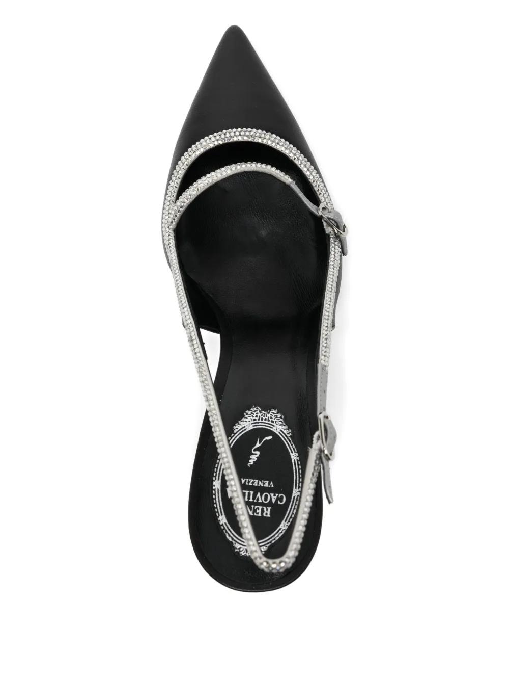 black crystal embellishment pointed toe slingback strap stiletto heel buckle fastening