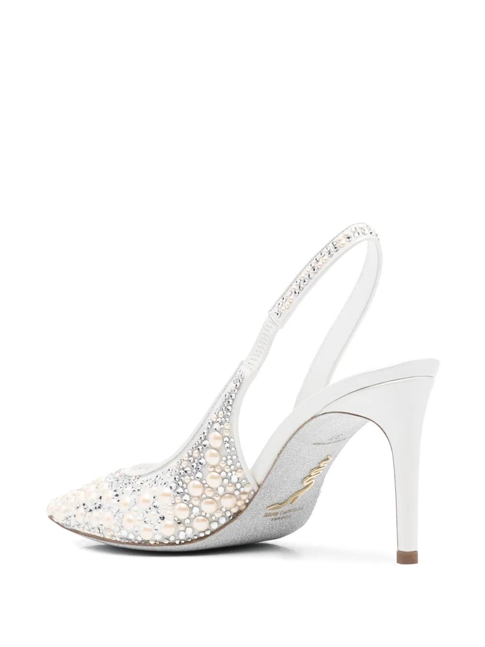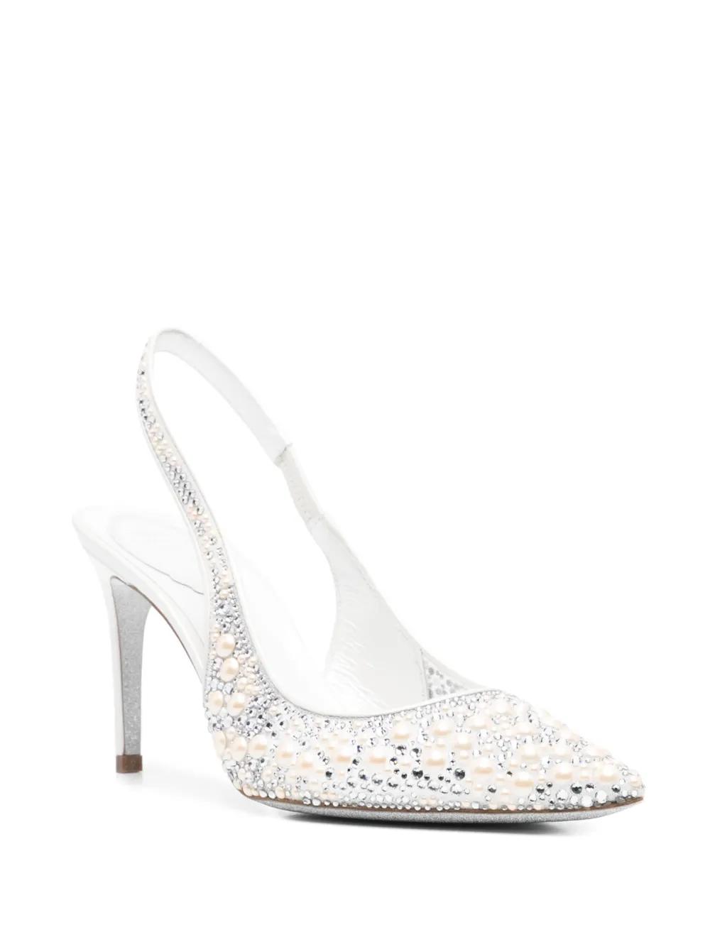 René Caovilla 80mm pearl-embellished pumps - White
