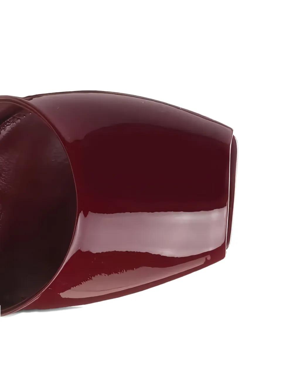 red ankle strap stiletto heel peep toe buckle fastening patent finish