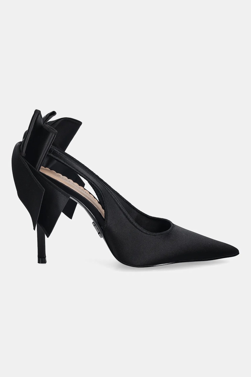- Spiczasty, usztywniony nosek. - Model z odkrytą piętą. - Komfortowe wnętrze. - Ozdobny detal. - Wysokość obcasa: 10,5 cm. - Długość wkładki wynosi: 24 cm. - Wymiary podane dla rozmiaru: 36.