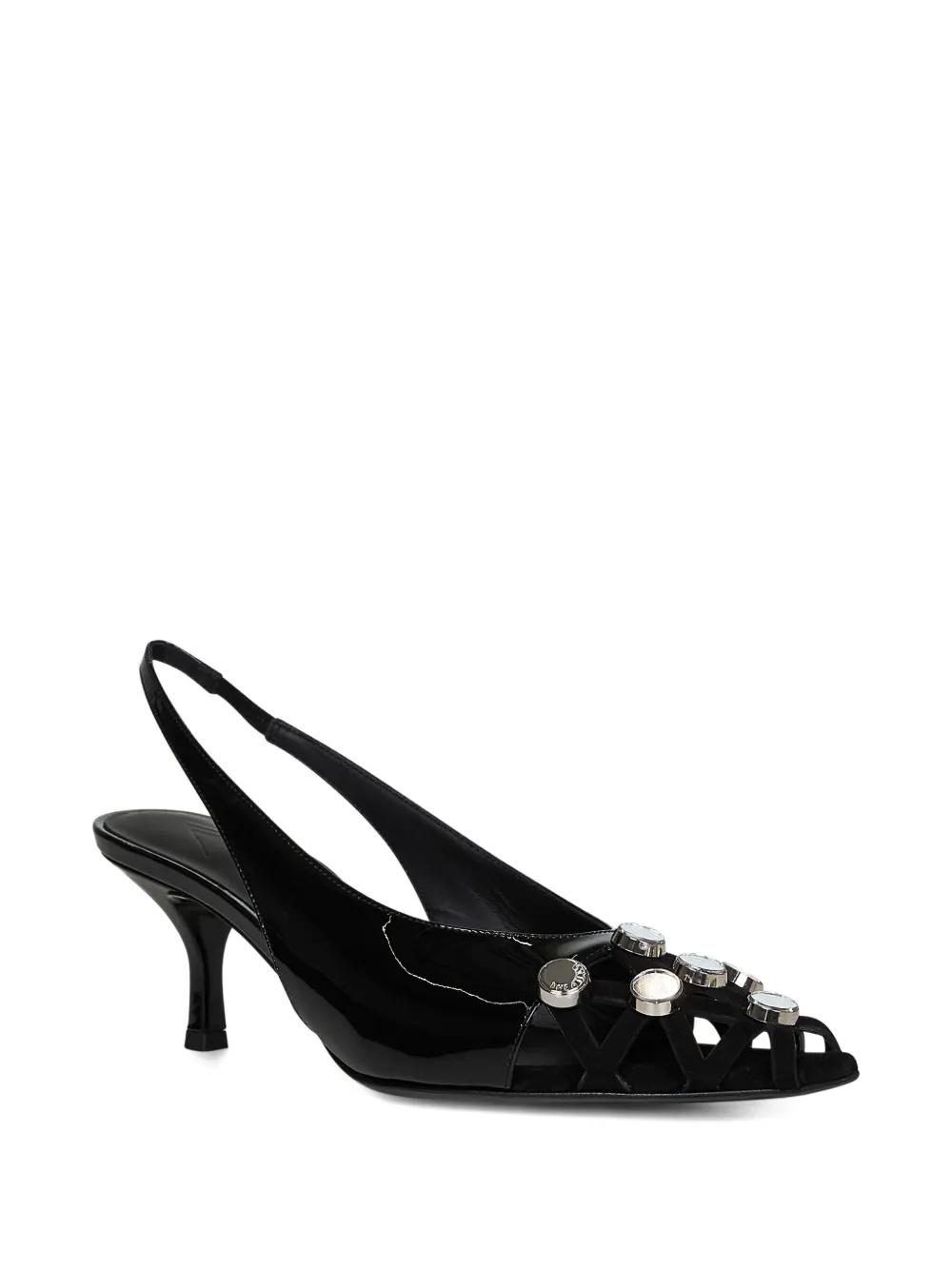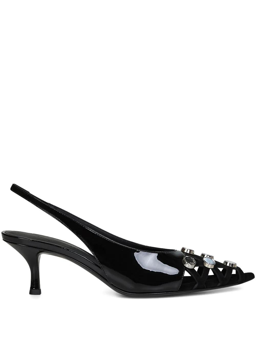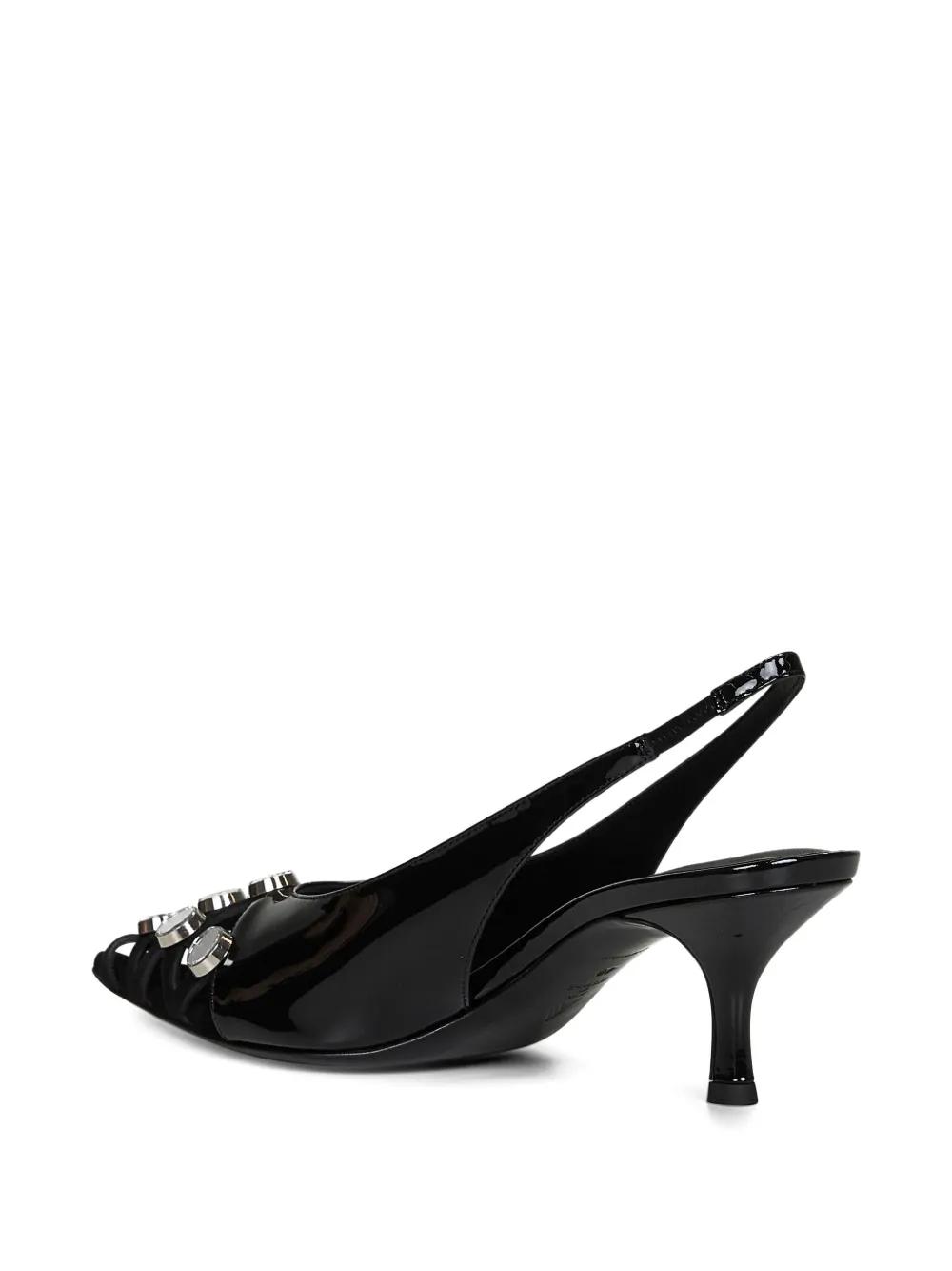 black slingback strap pointed toe branded insole mid heel cut-out detailing