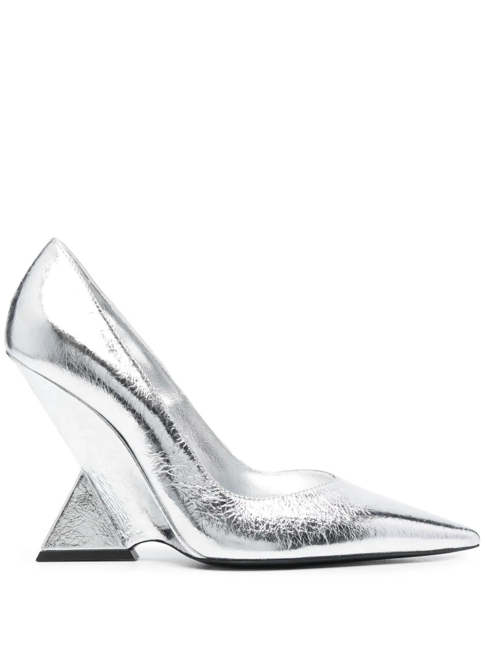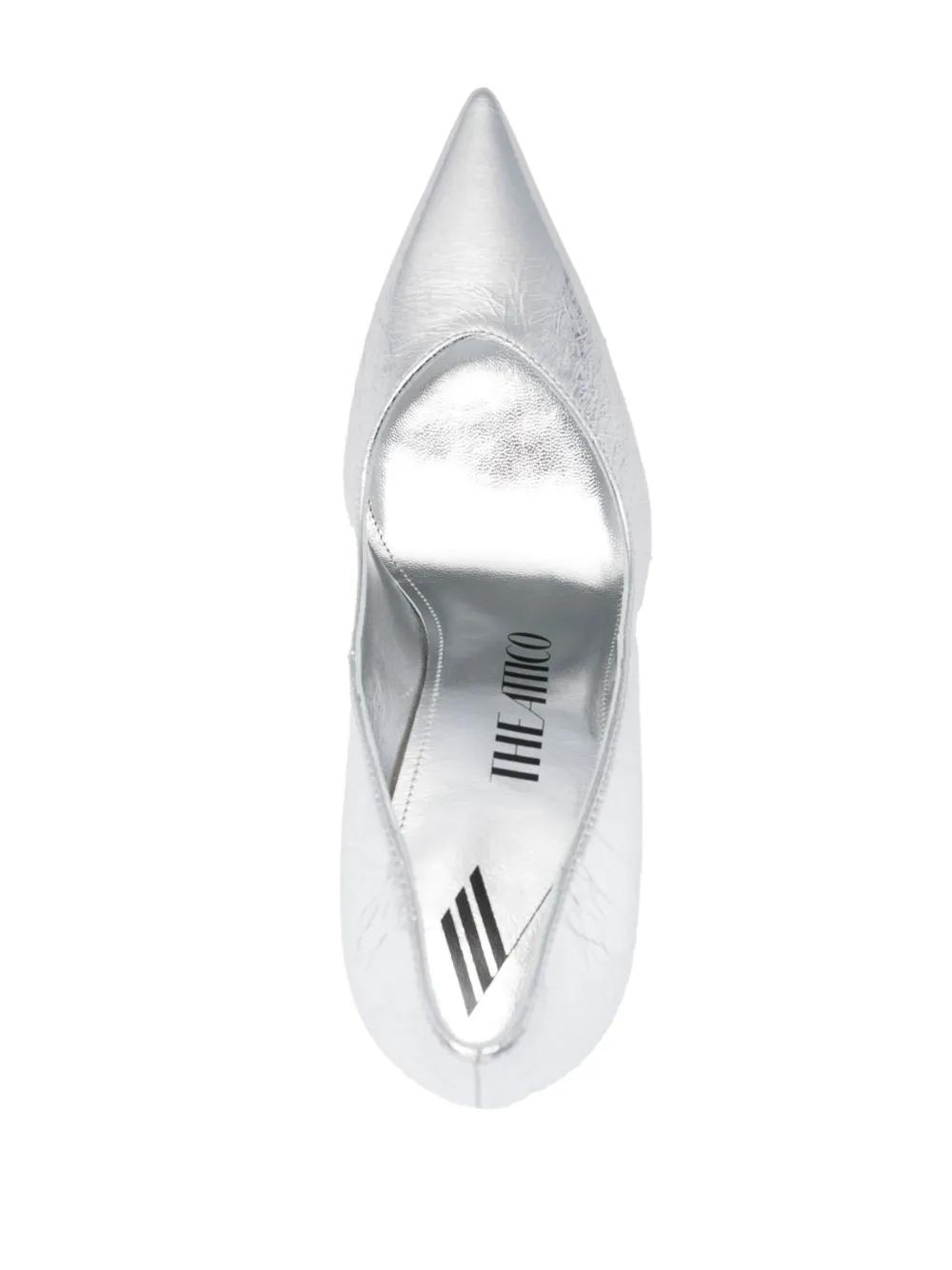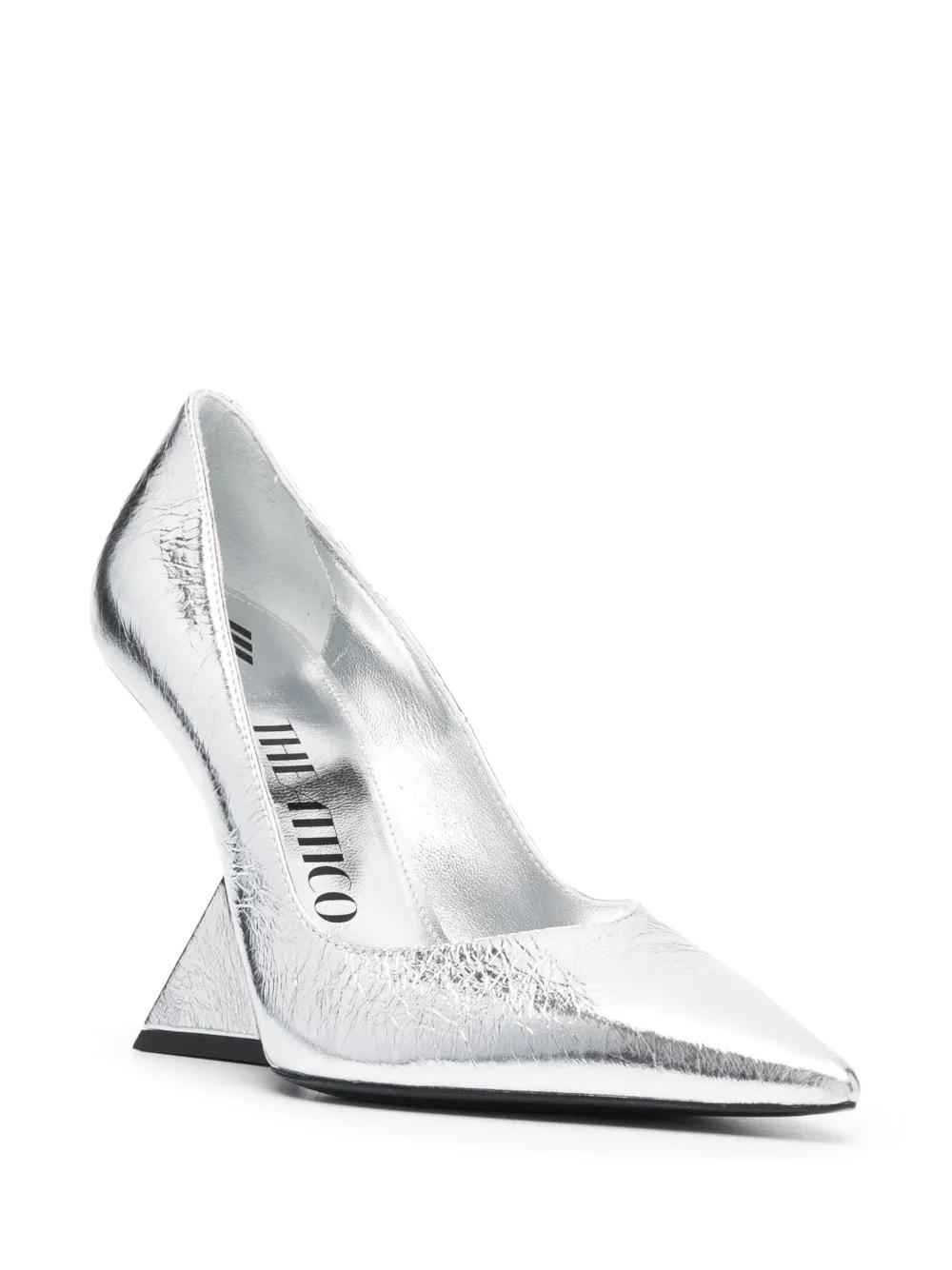 silver-tone calf leather cracked effect pointed toe slip-on style branded insole high heel