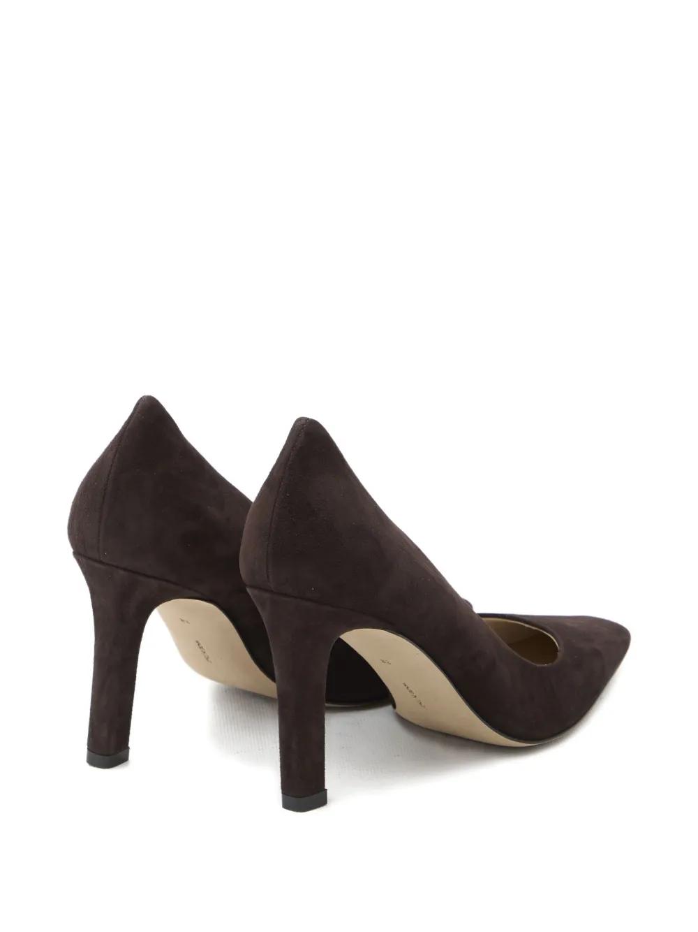 brown suede square-toe covered-heel 80mm heel leather-sole