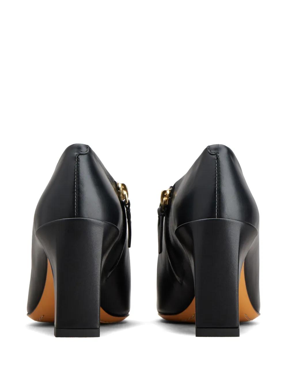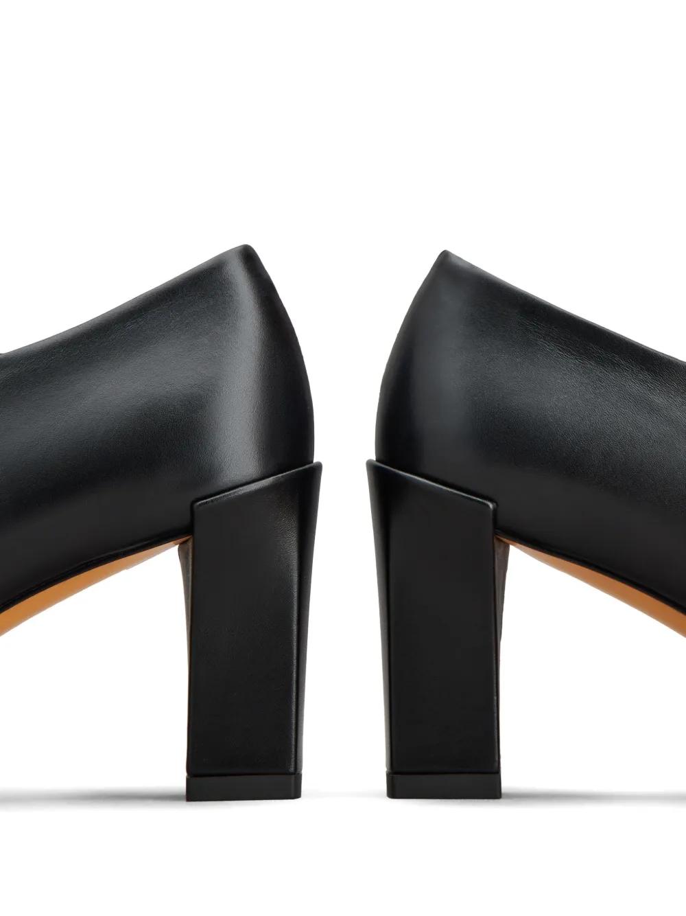 black calf leather smooth grain square toe side zip fastening leather lining 85mm block heel