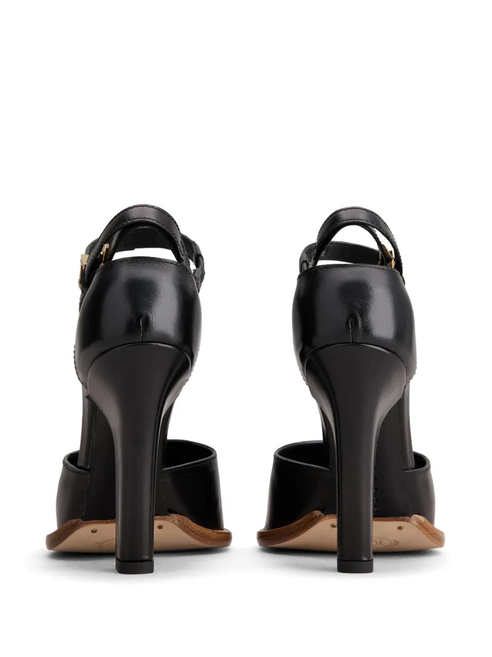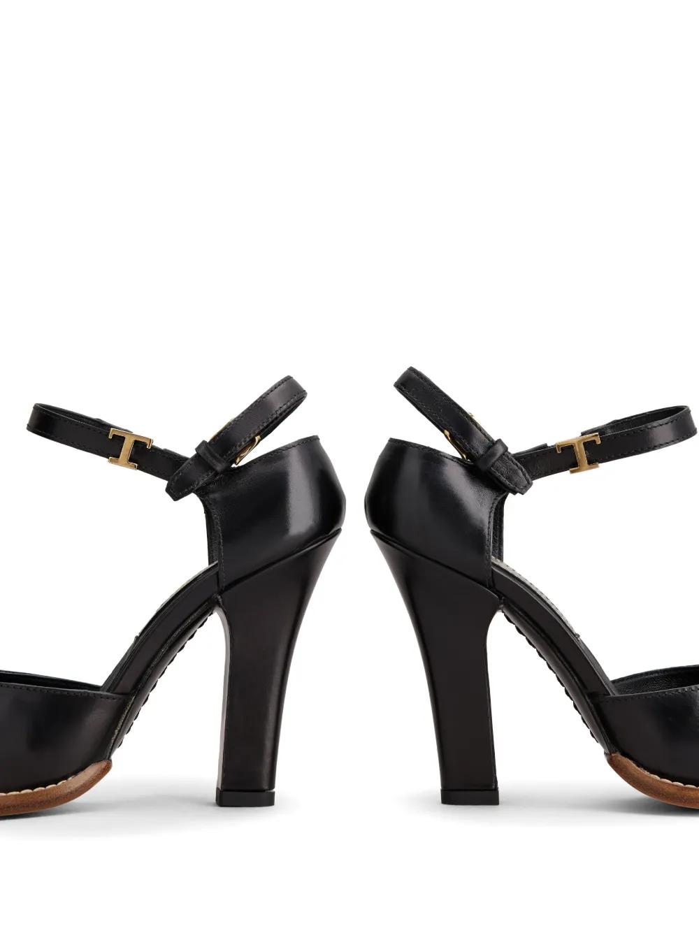 black leather logo plaque buckle-fastening ankle strap almond toe branded insole high heel
